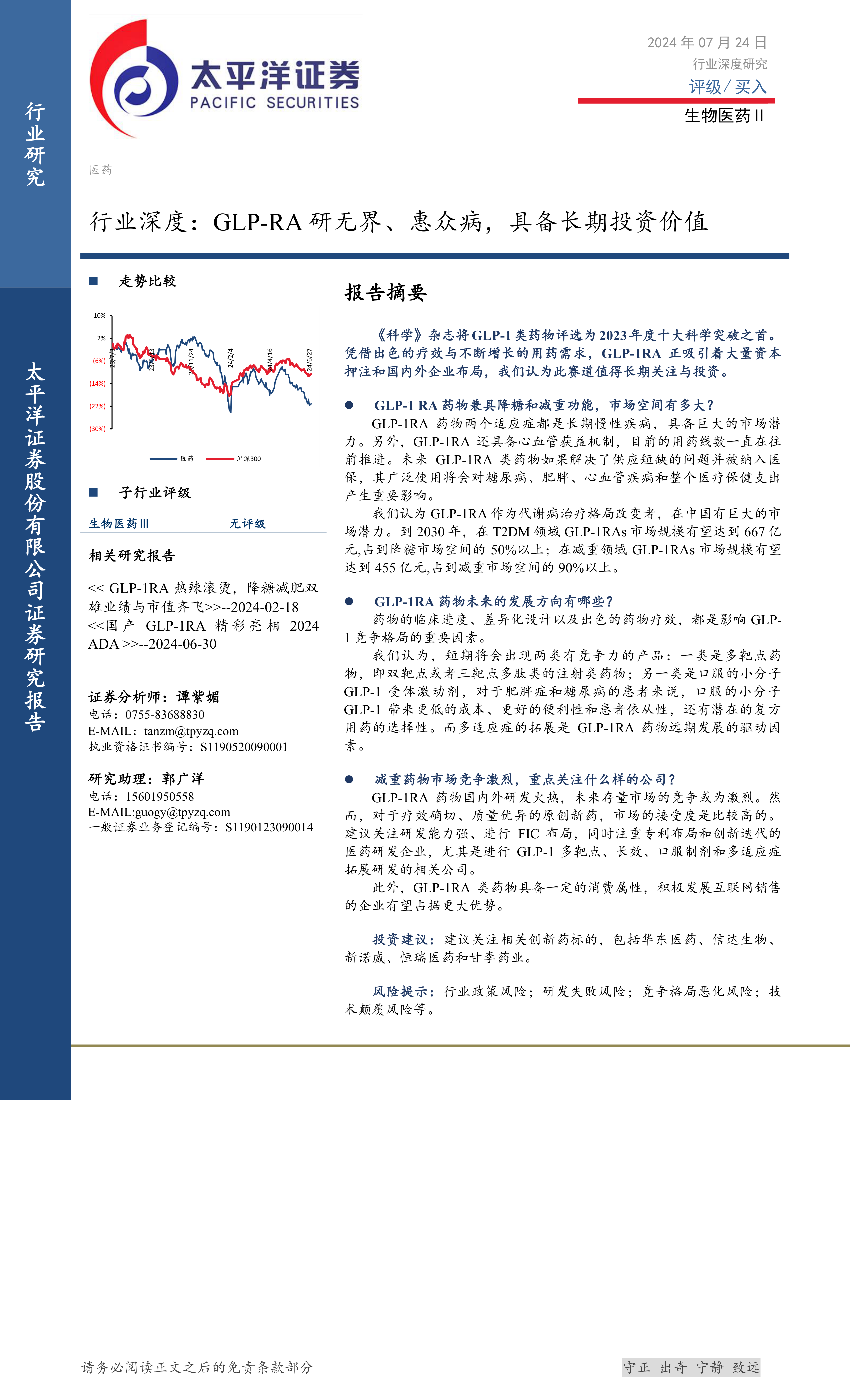 生物医药Ⅱ行业深度:GLP-RA研无界、惠众病,具备长期投资价值