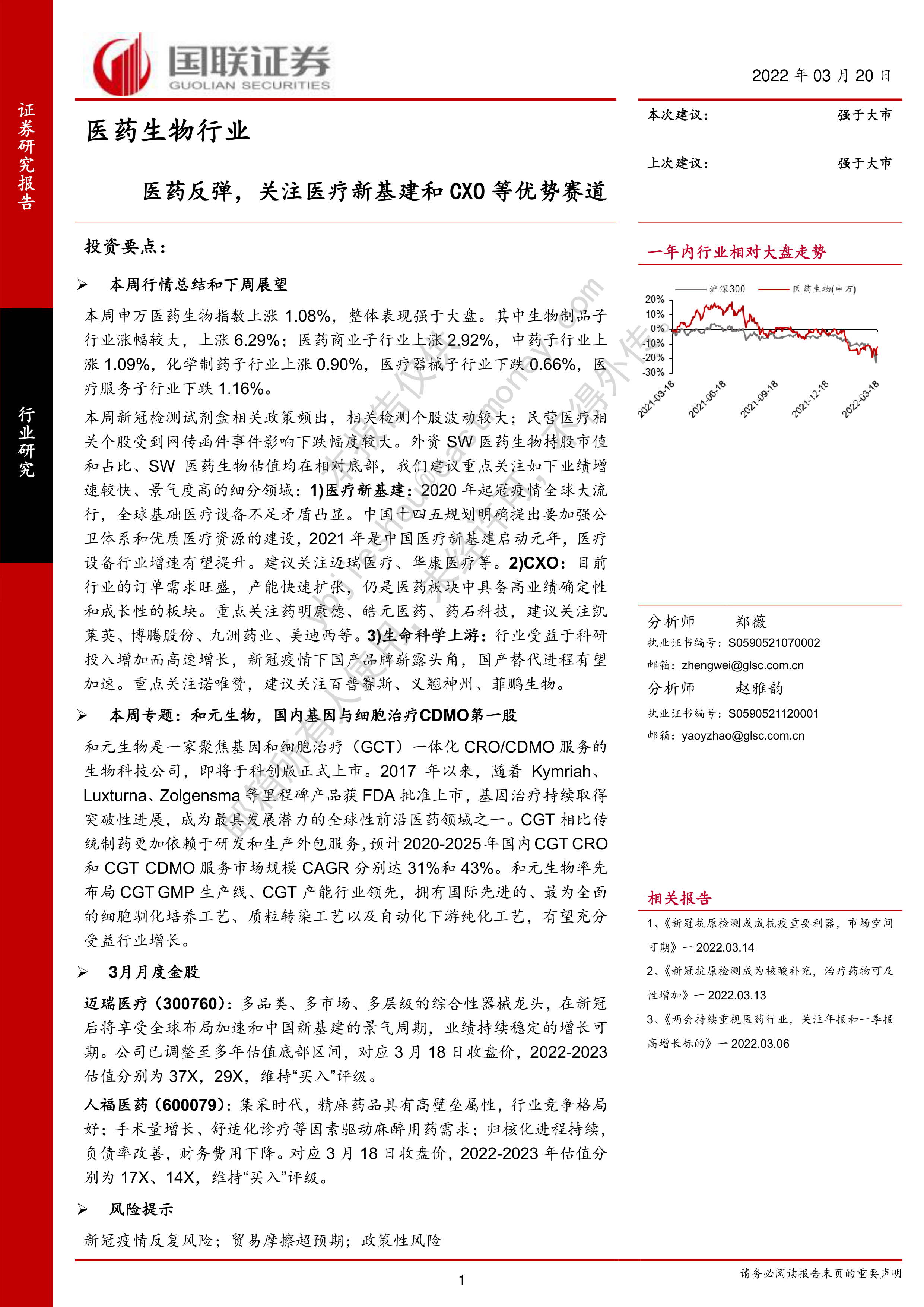 医药生物行业:医药反弹,关注医疗新基建和CXO等优势赛道
