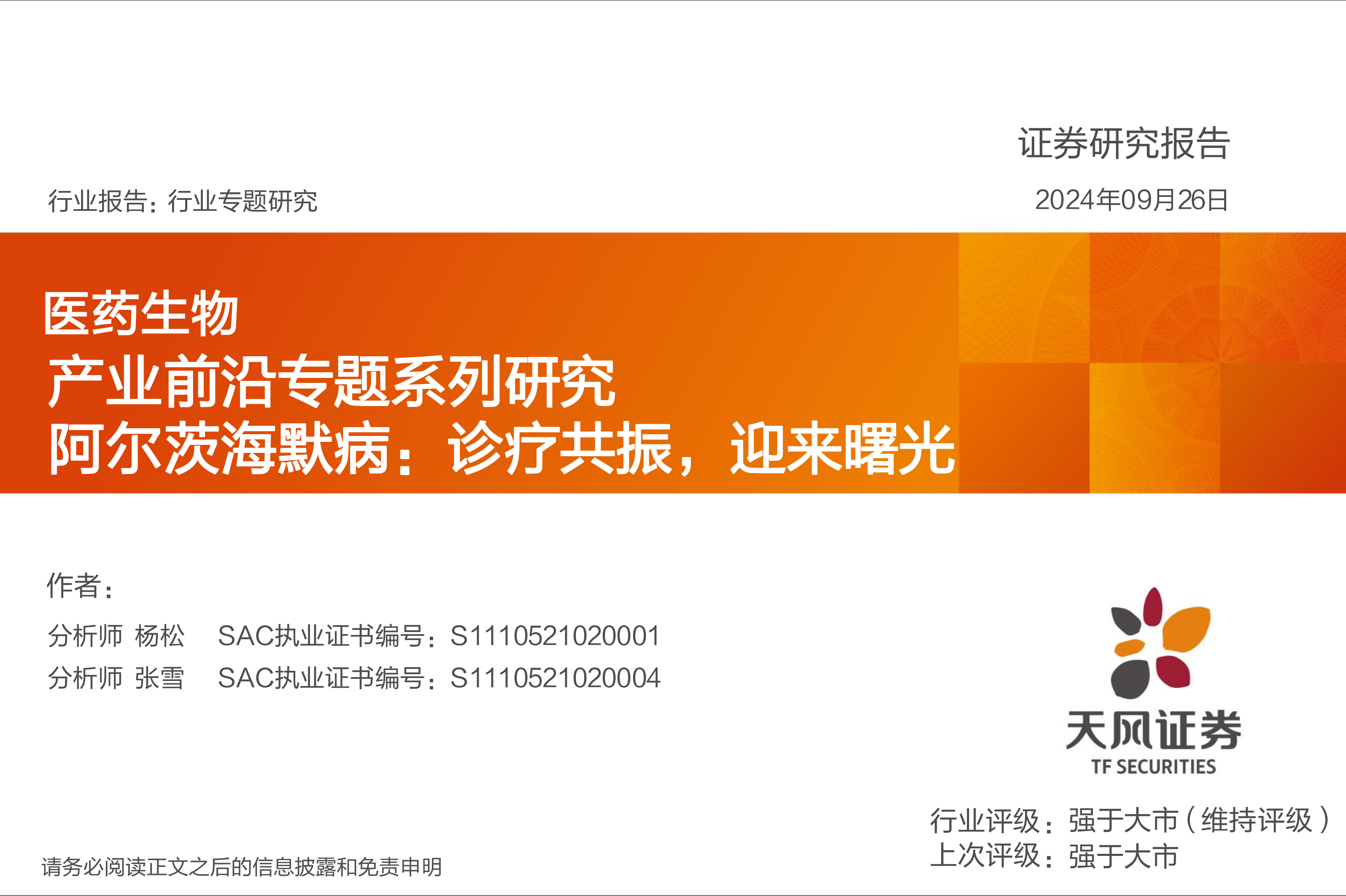 医药生物产业前沿专题系列研究:阿尔茨海默病:诊疗共振,迎来曙光