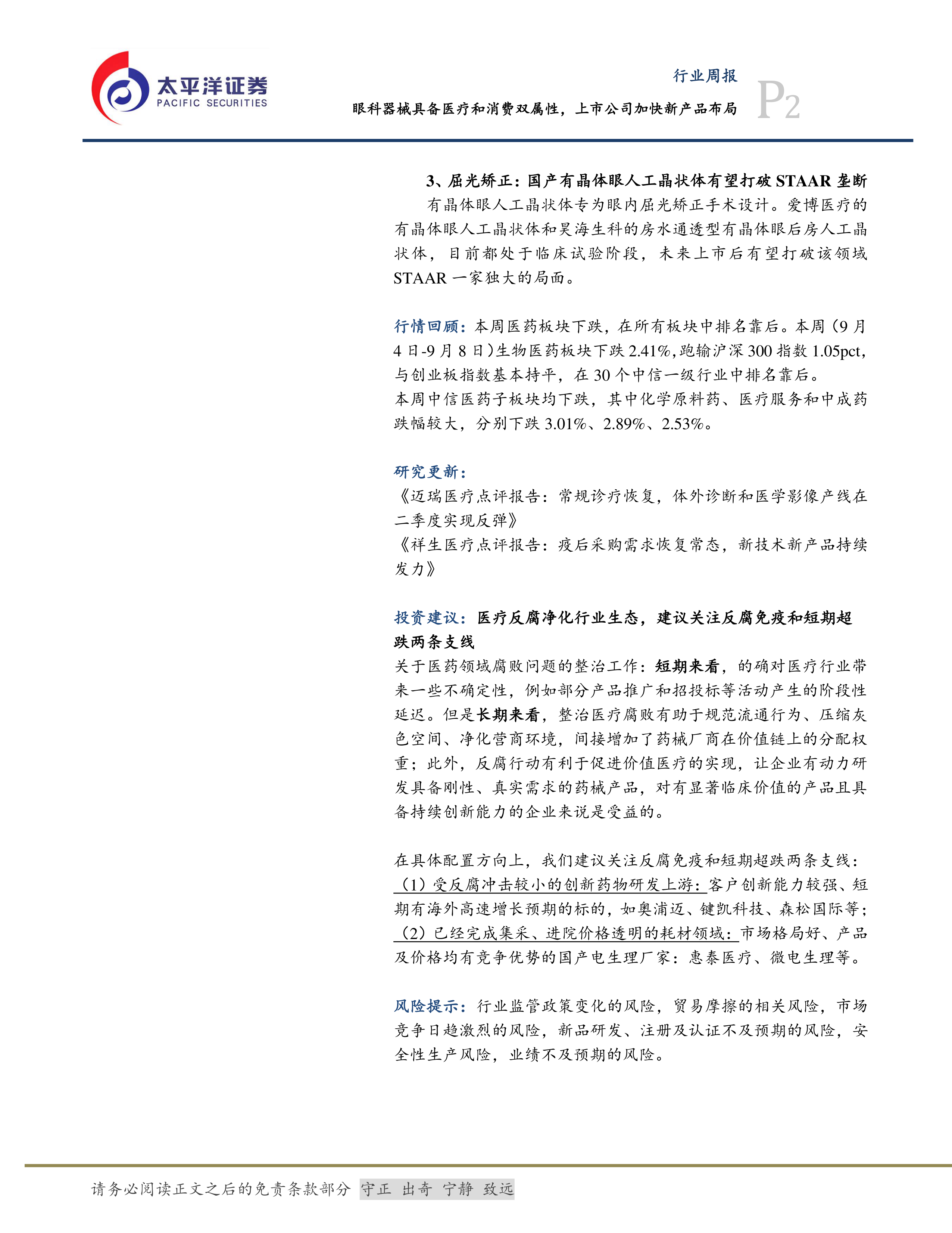 医药行业周报:眼科器械具备医疗和消费双属性,上市公司加快新产品布局