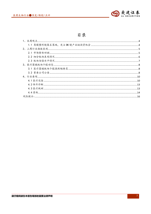 建议关注OK镜产业链和新冠疫情相关产业链的投资机会。同时,需警惕疫后复苏不及预期、行业竞争加剧、政策变动、宏观经济不确定性以及研发销售风险。