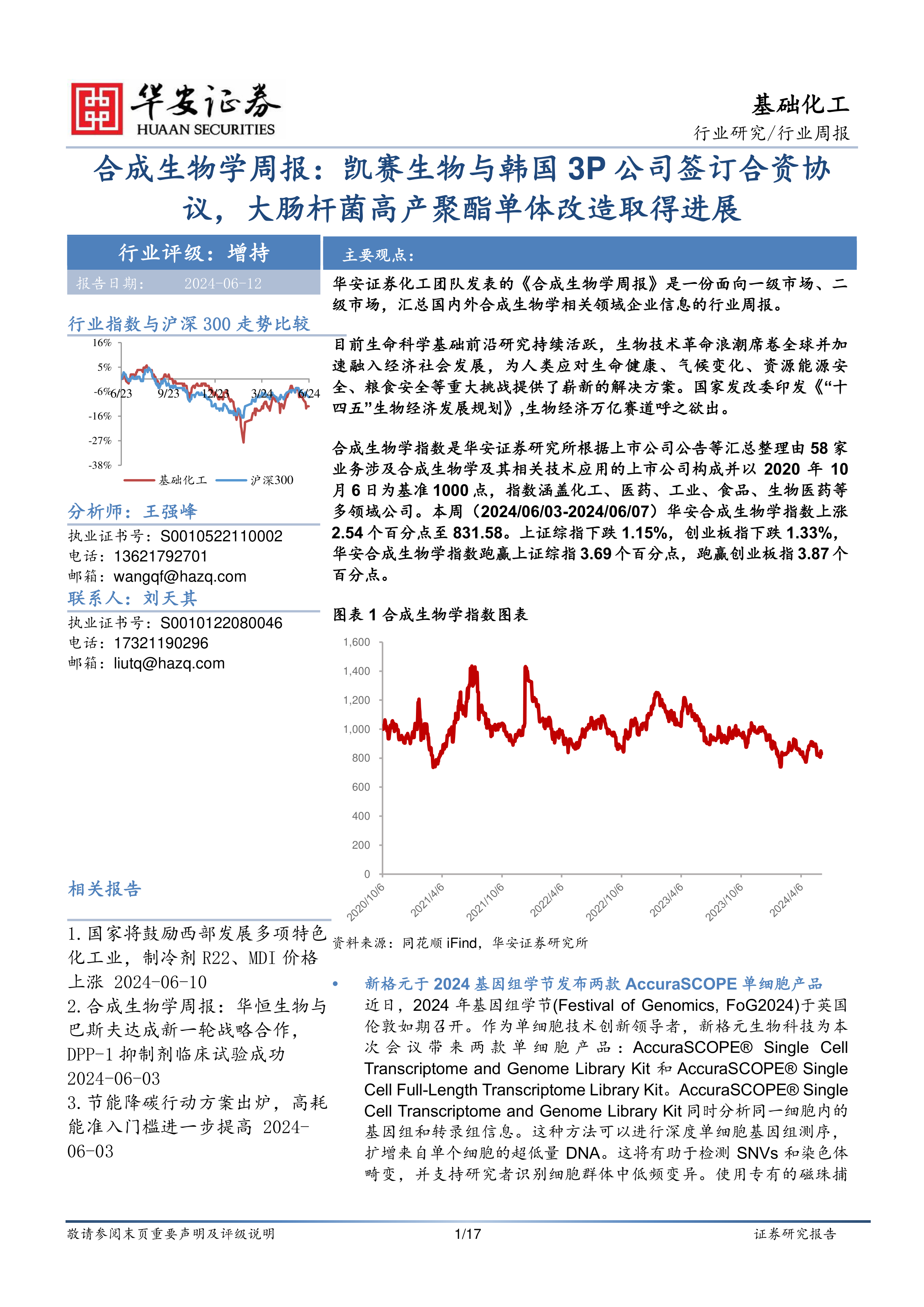 基础化工行业周报:合成生物学周报:凯赛生物与韩国3P公司签订合资协议,大肠杆菌高产聚酯单体改造取得进展