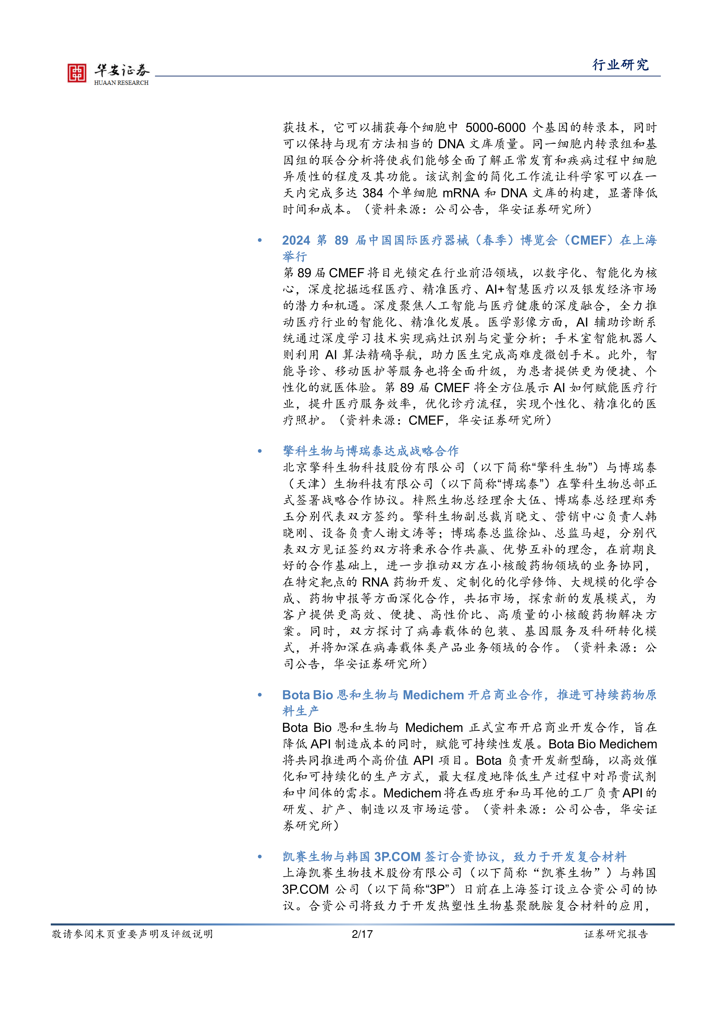 获技术,它可以捕获每个细胞中5000-6000个基因的转录本,同时可以保持与现有方法相当的DNA文库质量。同一细胞内转录组和基因组的联合分析将使我们能够全面了解正常发育和疾病过程中细胞异质性的程度及其功能。该试剂盒的简化工作流让科学家可以在一天内完成多达384个单细胞mRNA和DNA文库的构建,显著降低时间和成本。(资料来源:公司公告,华安证券研究所)