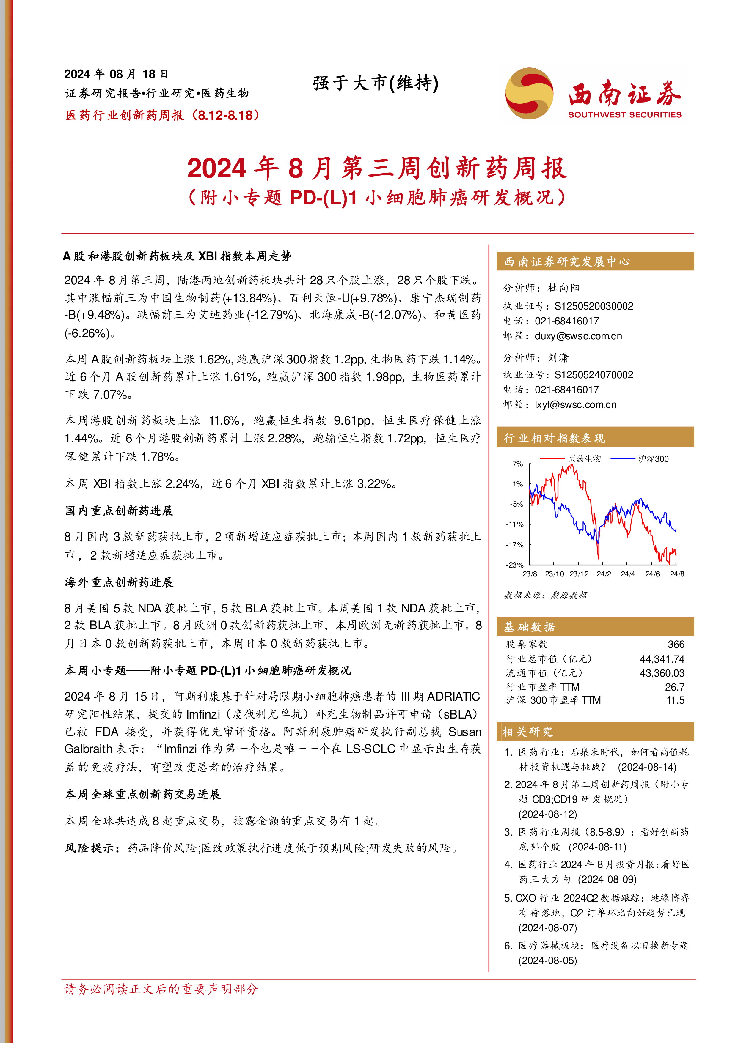 2024年8月第三周创新药周报(附小专题PD-(L)1小细胞肺癌研发概况)