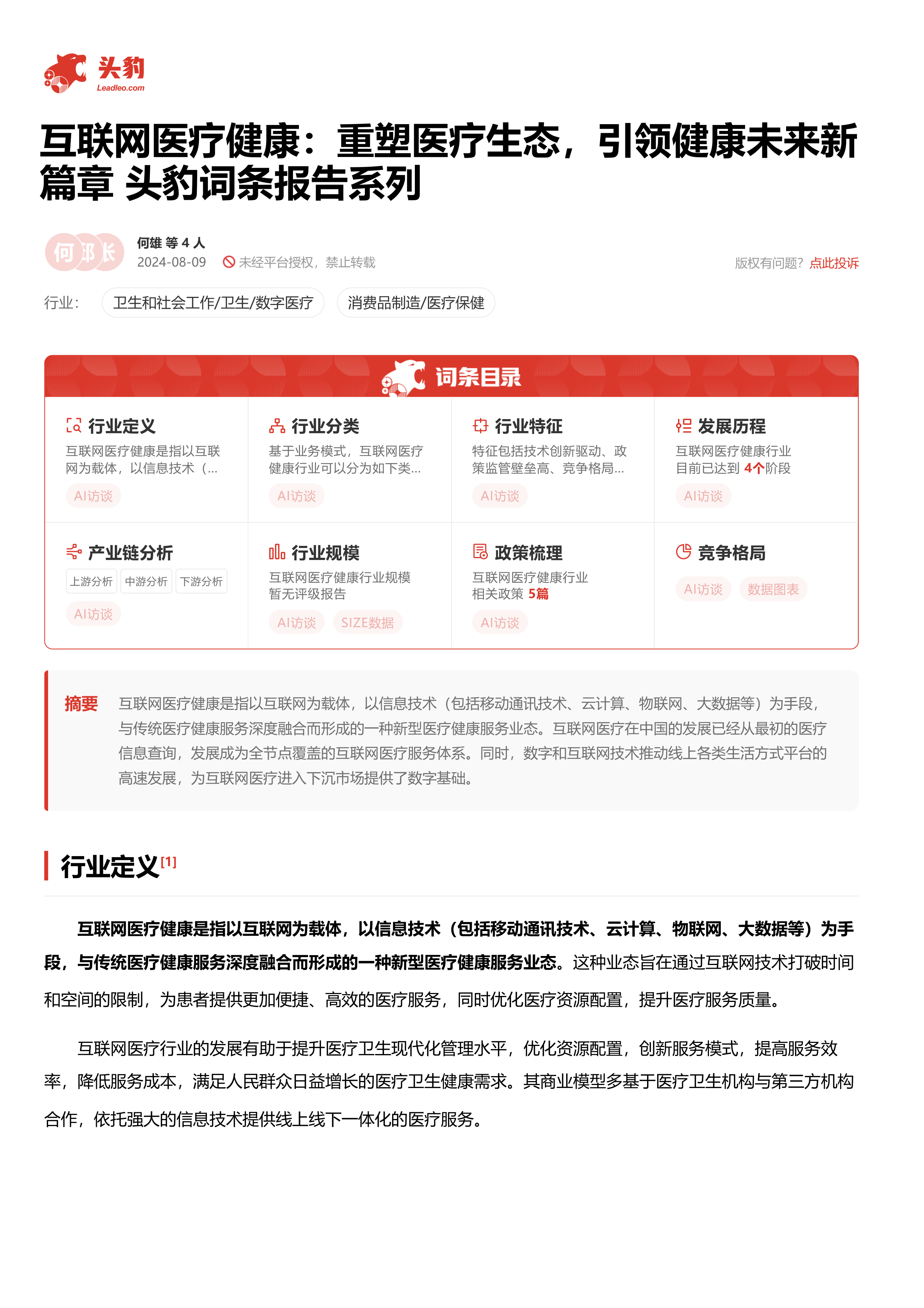 互联网医疗健康:重塑医疗生态,引领健康未来新篇章 头豹词条报告系列