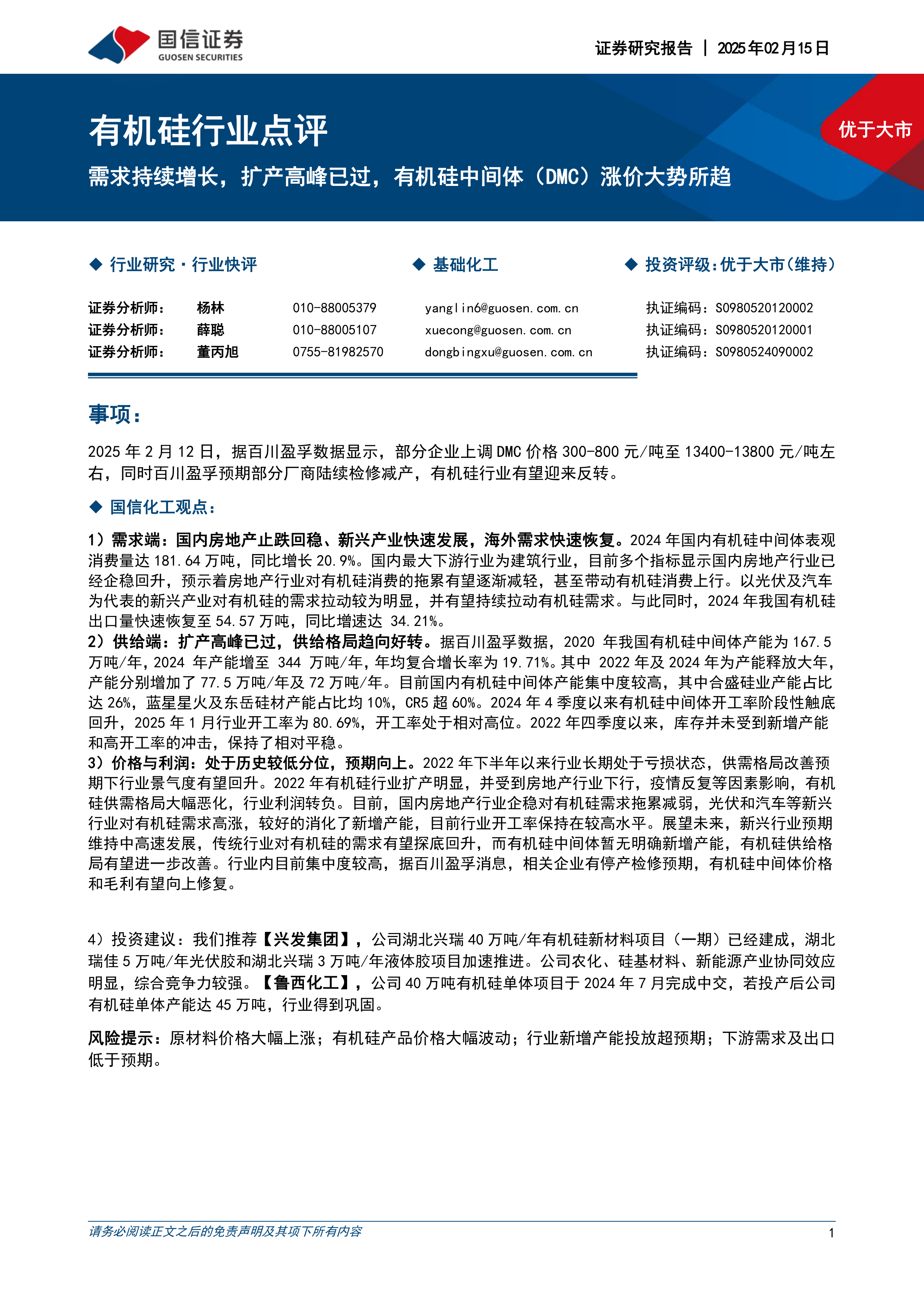 风险提示:原材料价格大幅上涨;有机硅产品价格大幅波动;行业新增产能投放超预期;下游需求及出口低于预期。