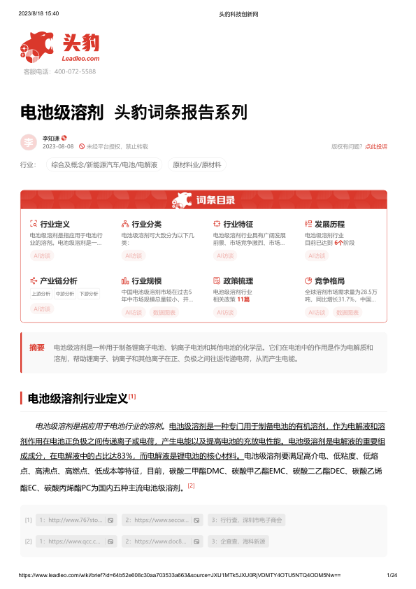 本报告深入剖析了电池级溶剂行业,揭示其作为锂离子电池电解液关键组成部分的核心地位,以及在新能源汽车、储能和消费电子等领域快速发展背景下的巨大市场潜力。行业特征显著,表现为技术门槛高、市场集中度高、需求增长迅猛,并受到国家政策的强力支持。