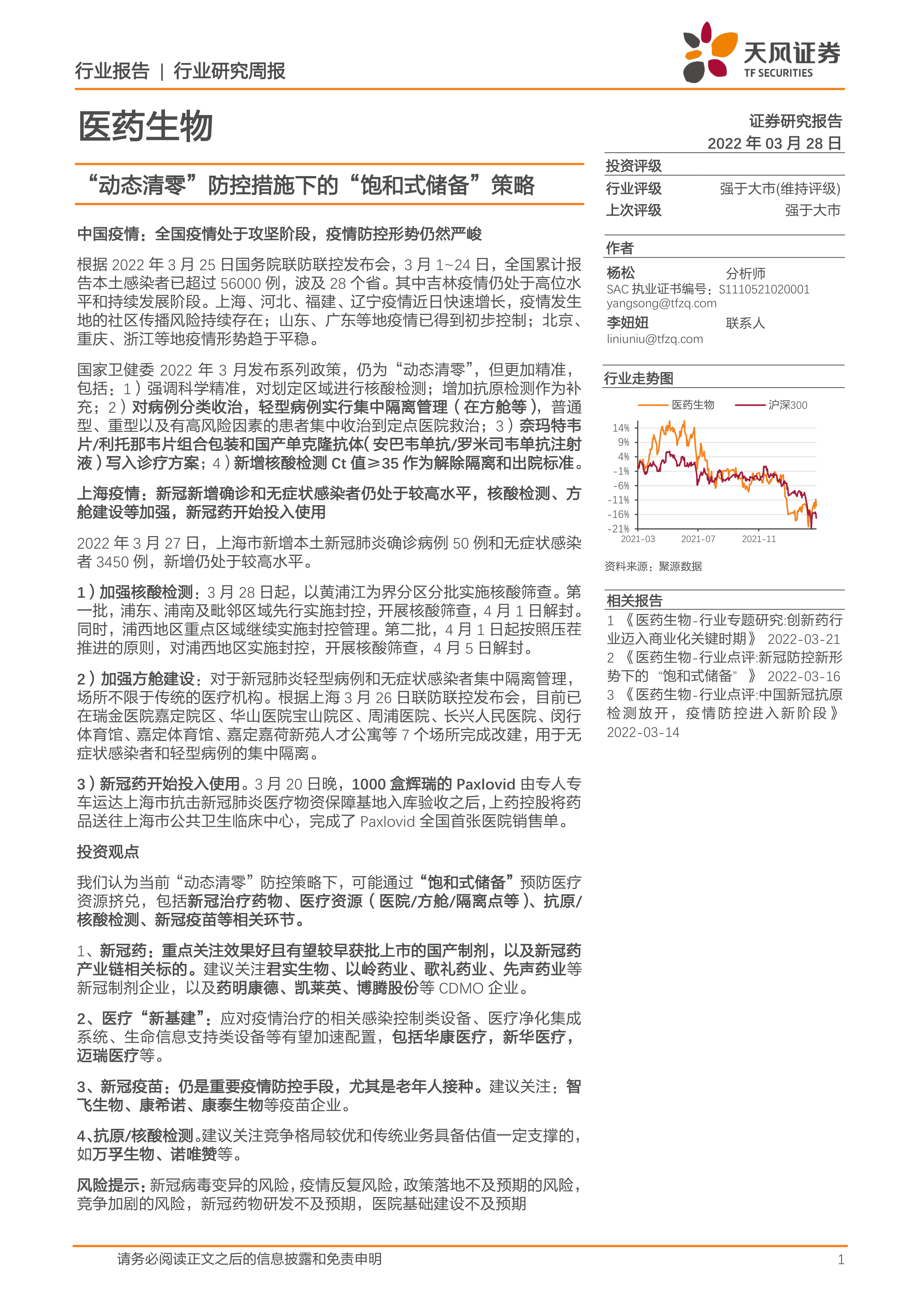 医药生物:“动态清零”防控措施下的“饱和式储备”策略