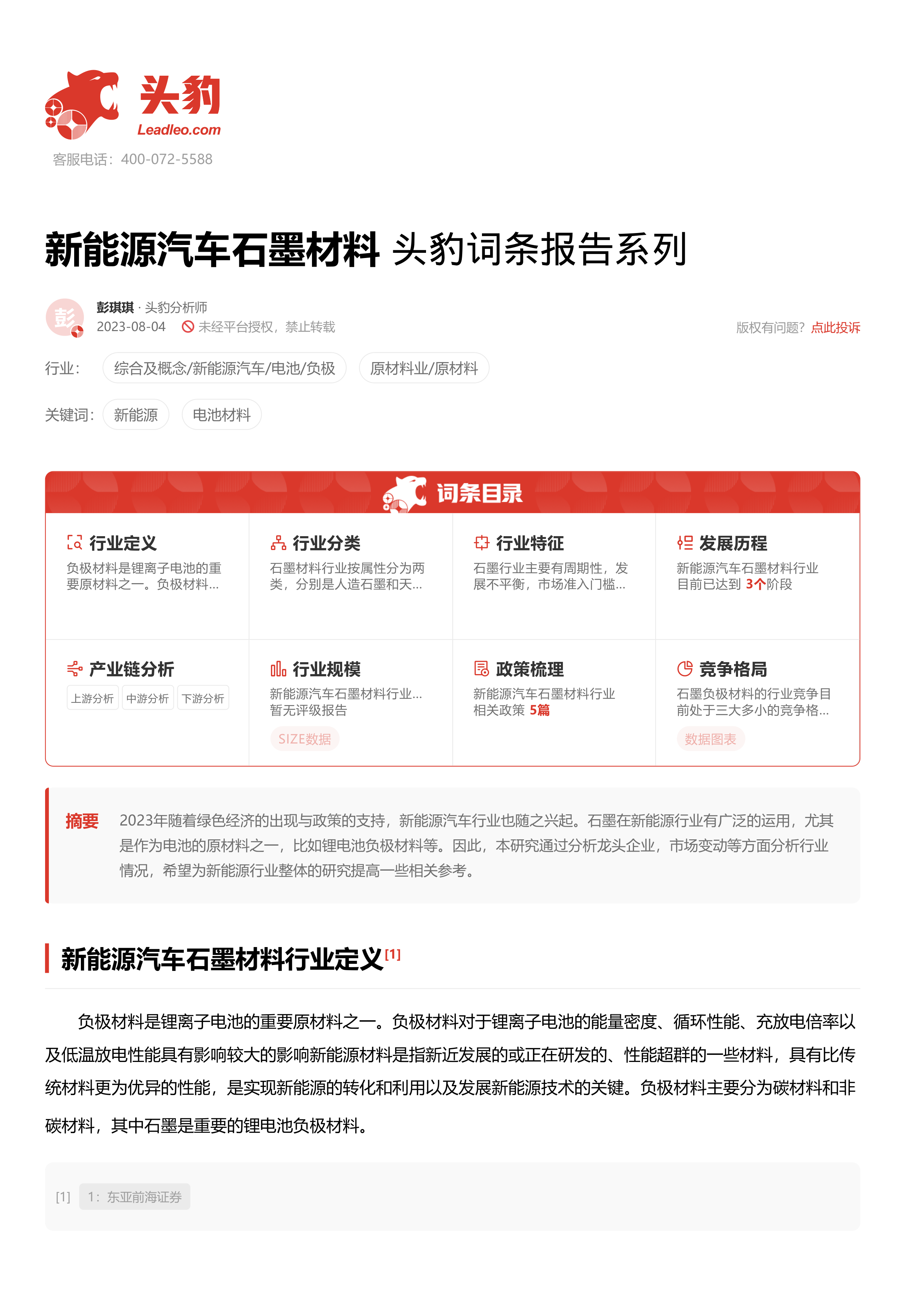 新能源汽车石墨材料 头豹词条报告系列