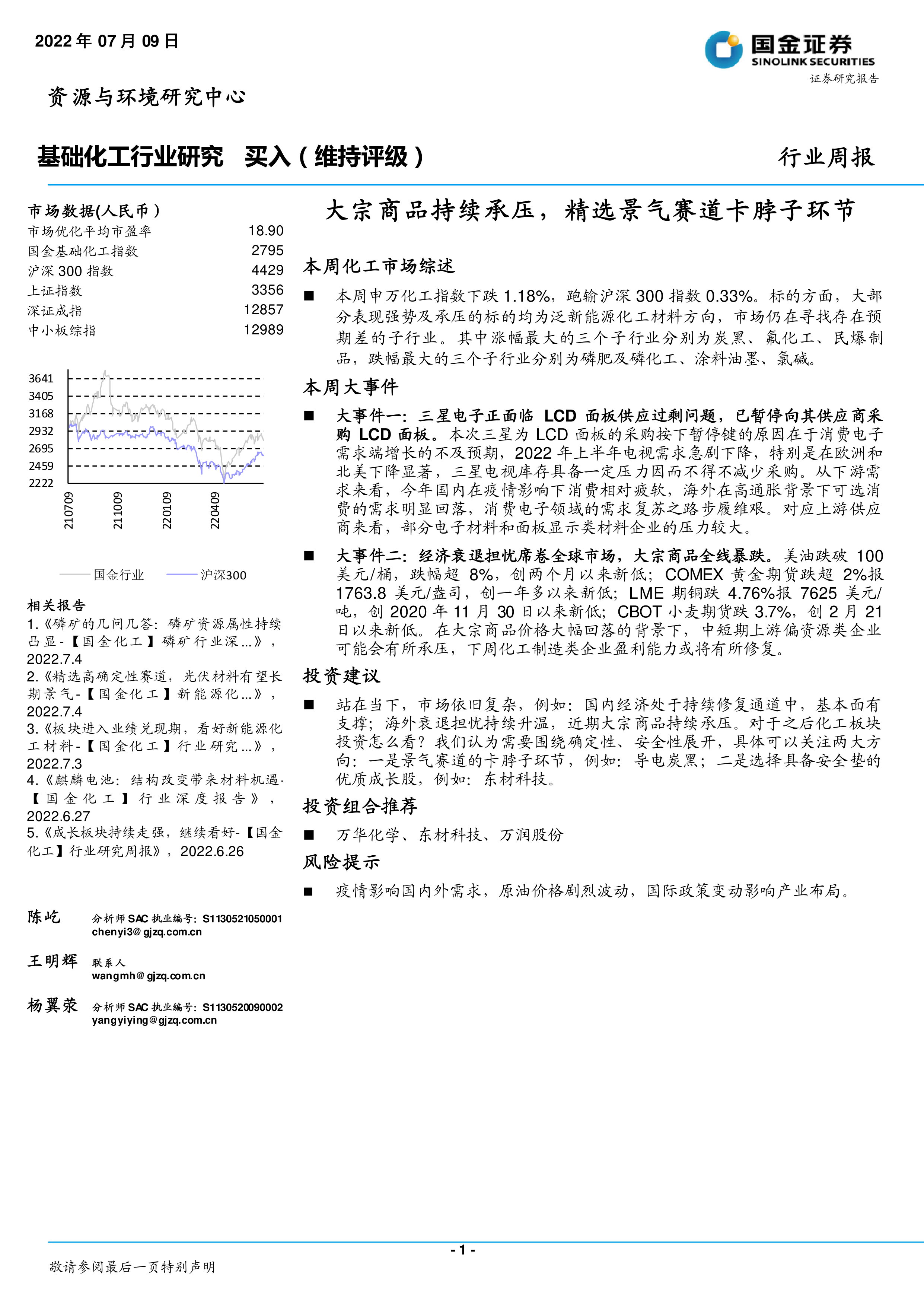 二、国金大化工团队近期观点