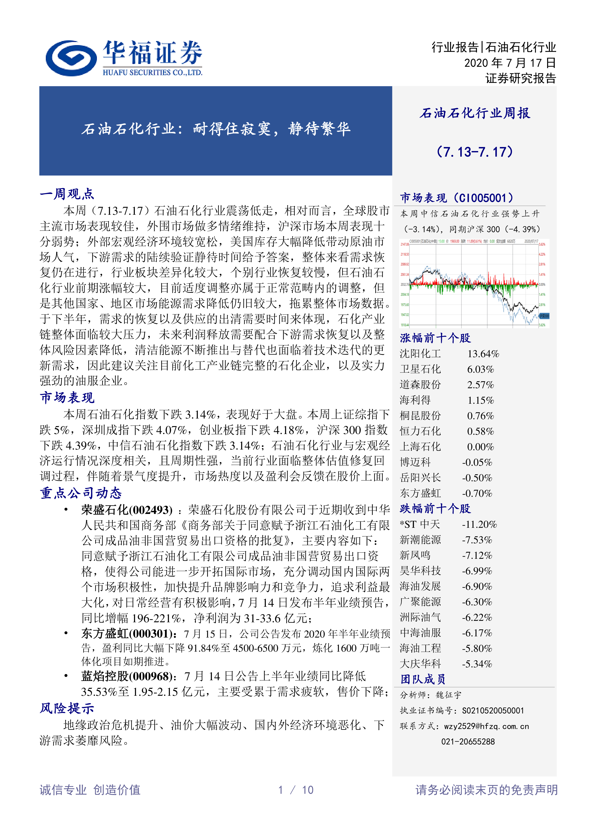 石油石化行业周报:耐得住寂寞,静待繁华