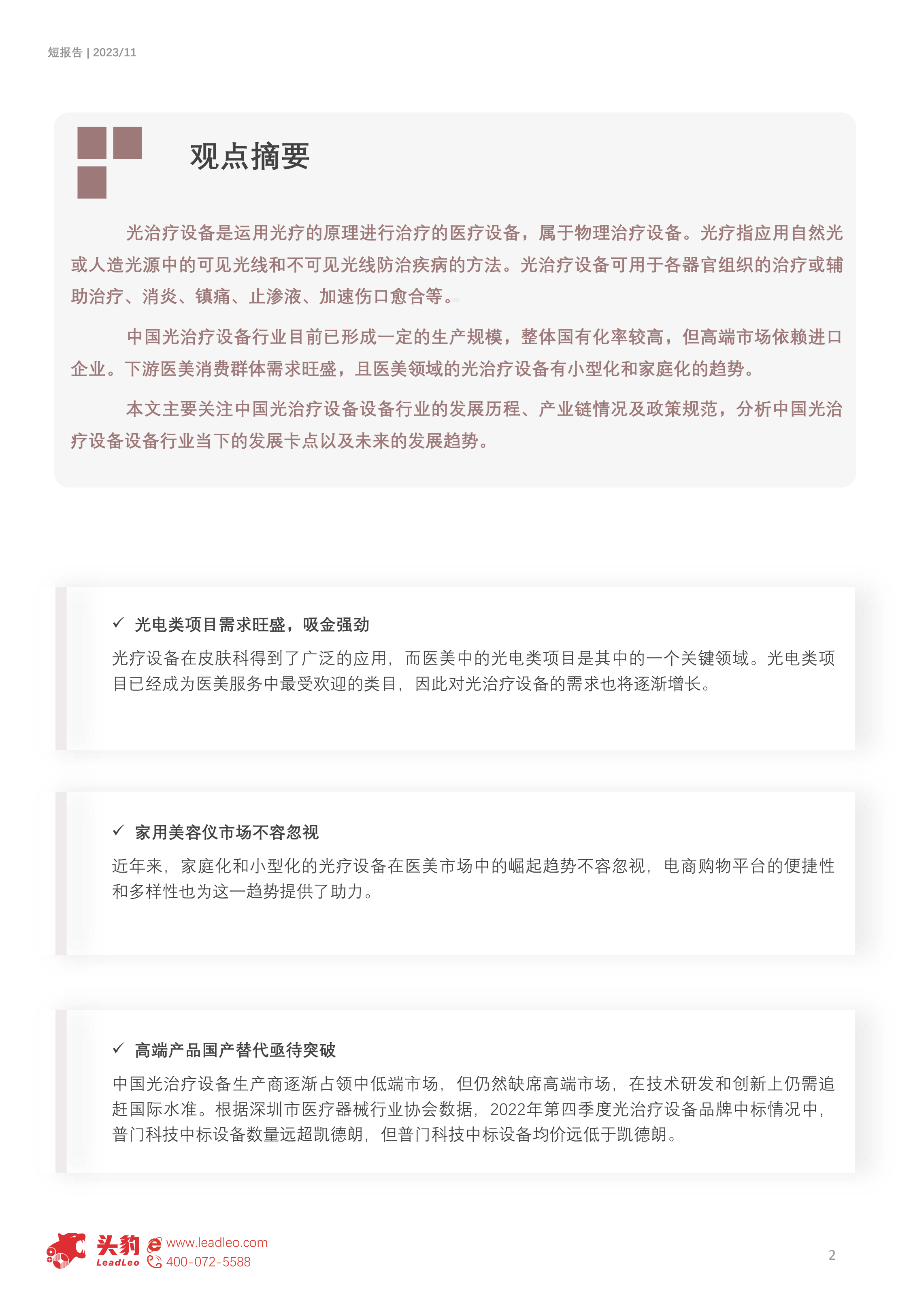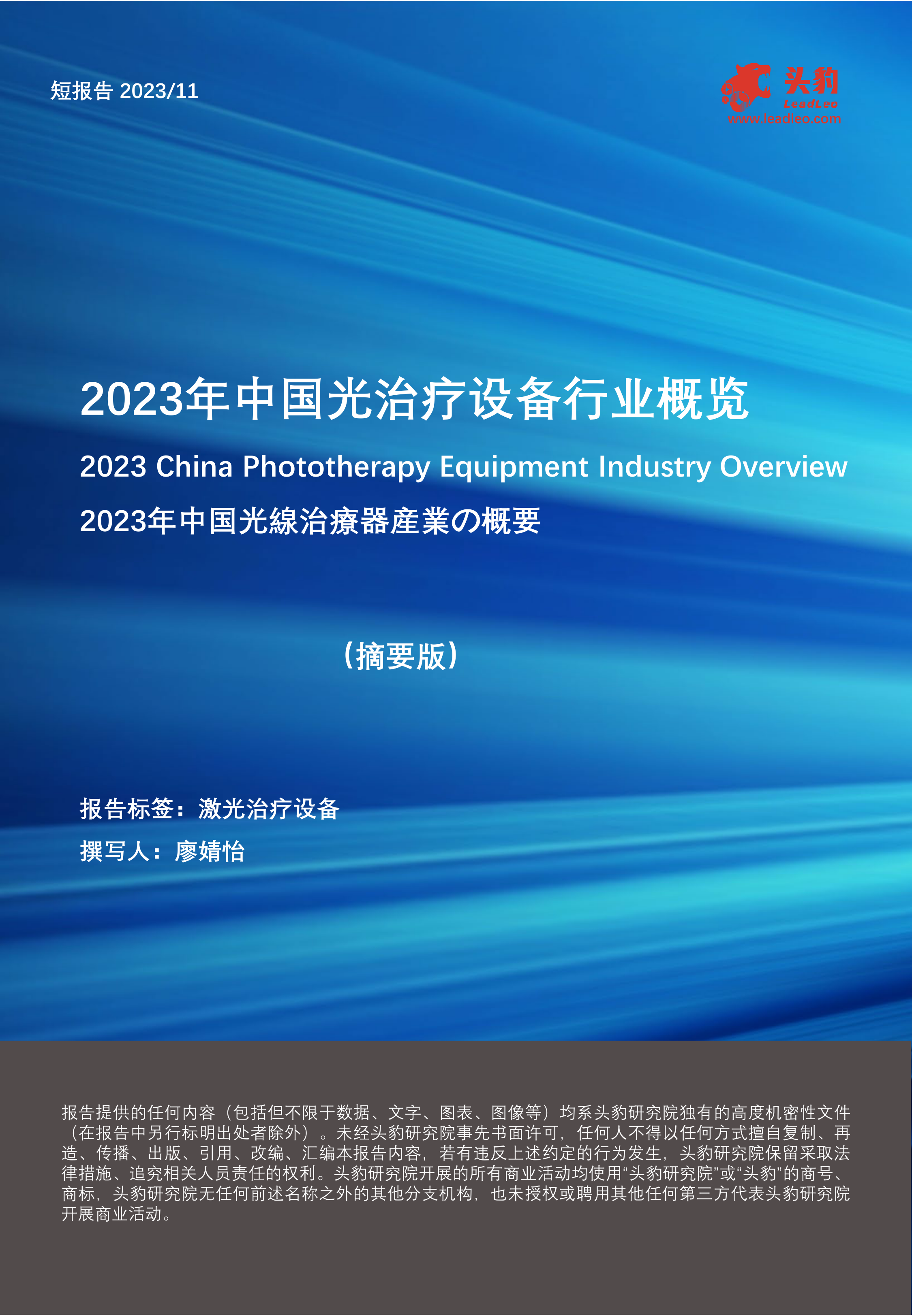 本报告深入分析了2023年中国光治疗设备行业的概况,揭示了该行业在市场结构、下游应用及未来发展趋势方面的关键特征。光治疗设备作为物理治疗的重要组成部分,在中国已形成一定规模,但高端市场对进口的依赖性依然显著。