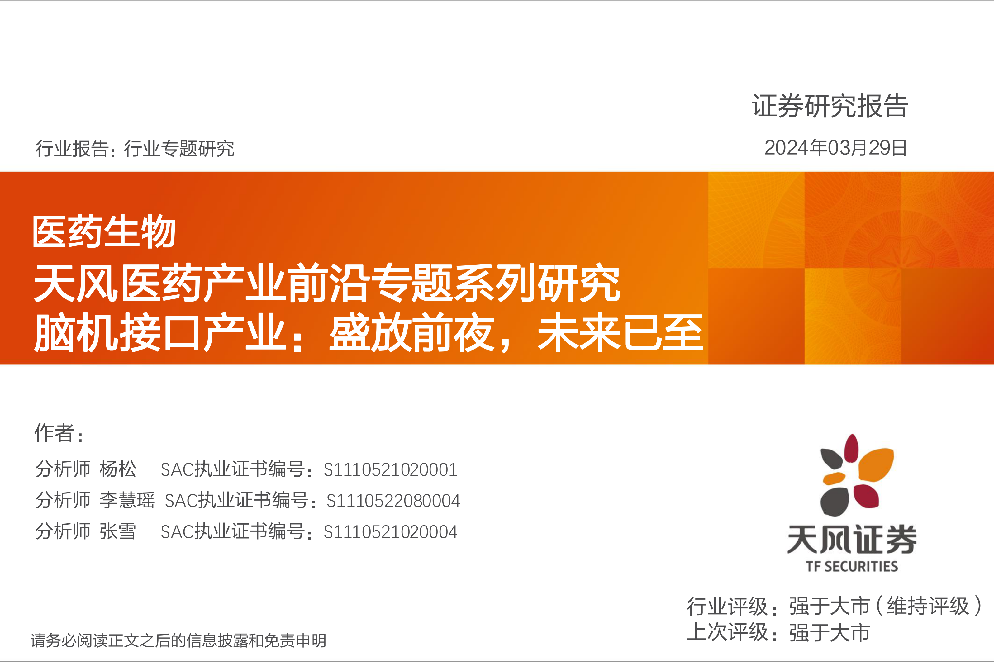天风医药产业前沿专题系列研究:脑机接口产业:盛放前夜,未来已至