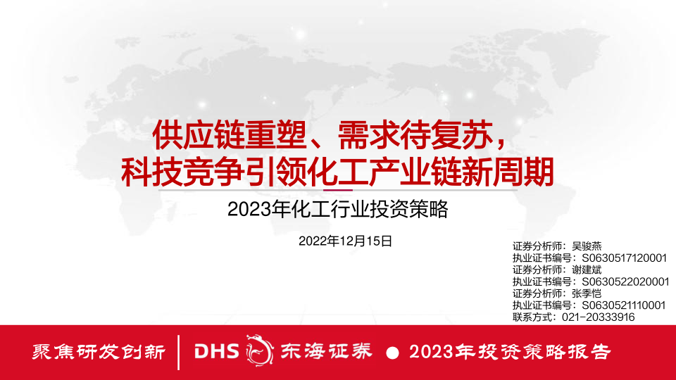2023年化工行业投资策略:供应链重塑、需求待复苏,科技竞争引领化工产业链新周期