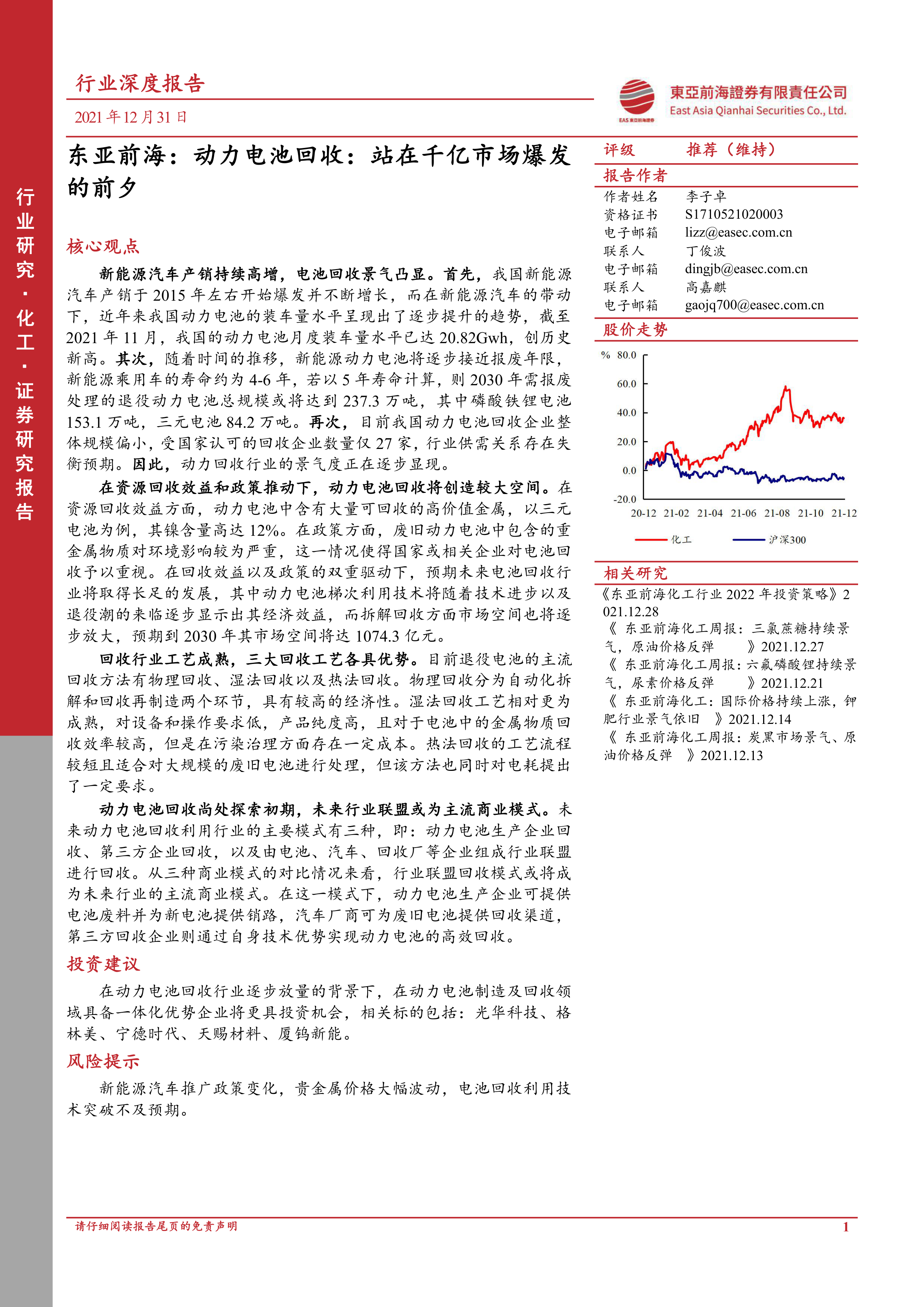 化工行业深度报告:动力电池回收:站在千亿市场爆发的前夕