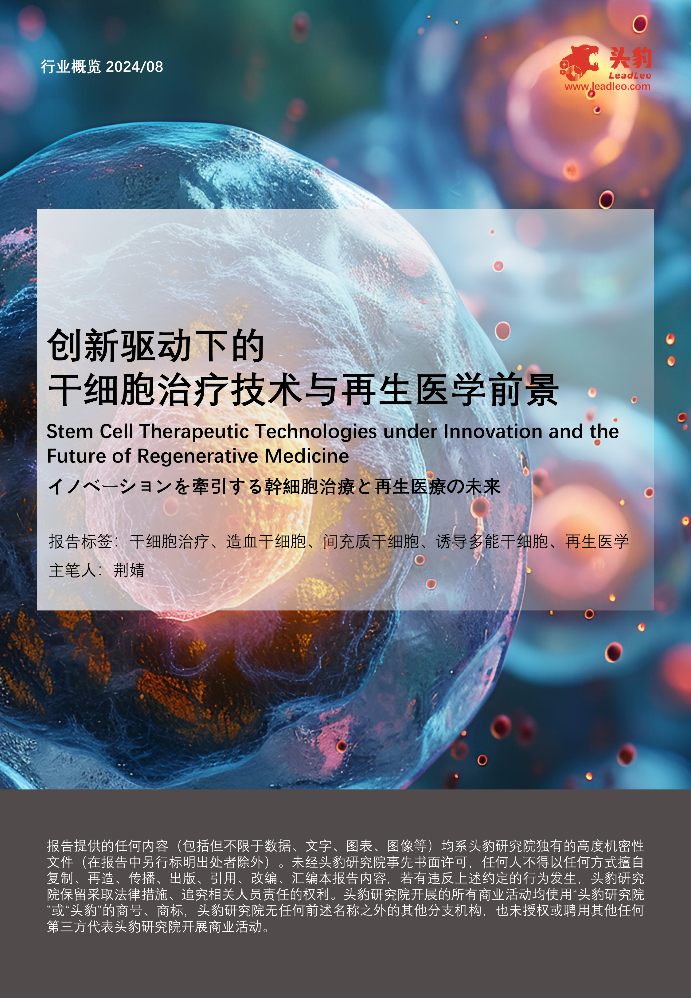 本报告全面分析了全球及中国干细胞治疗技术与再生医学的发展现状、挑战与机遇。中国干细胞产业虽然起步较晚,但在政策支持、科研投入和企业创新的共同推动下,正迎来快速发展期。尤其在间充质干细胞、诱导多能干细胞和全能干细胞等领域,中国科研人员和企业积极探索,有望在未来取得更多突破,为中国乃至全球的疾病治疗带来新的希望。