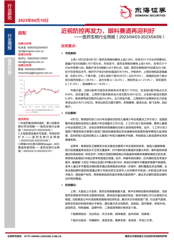 医药生物行业周报:近视防控再发力,眼科赛道再迎利好