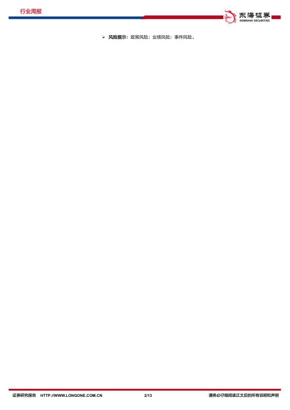 风险提示:政策风险;业绩风险;事件风险。