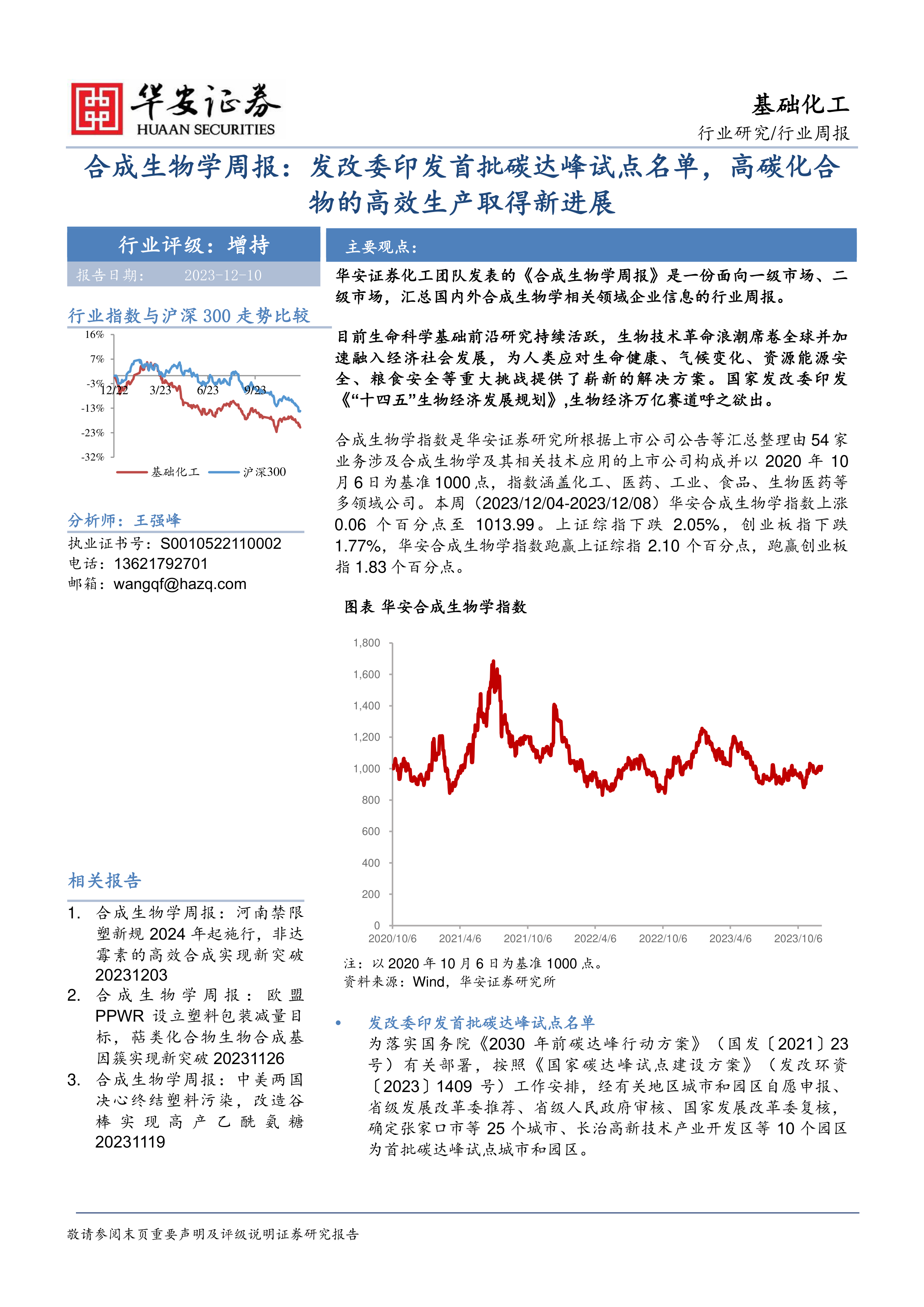 合成生物学周报:发改委印发首批碳达峰试点名单,高碳化合物的高效生产取得新进展