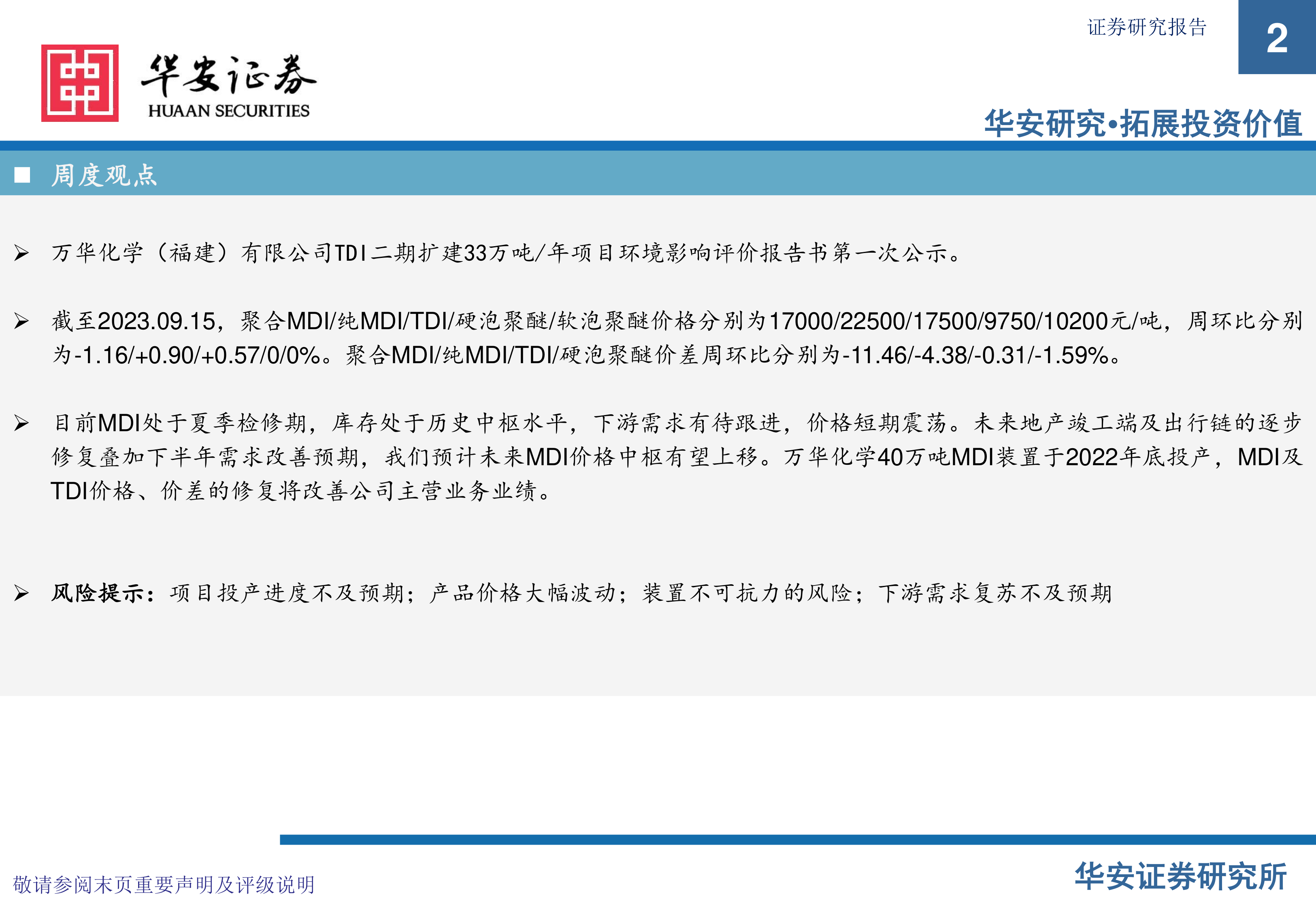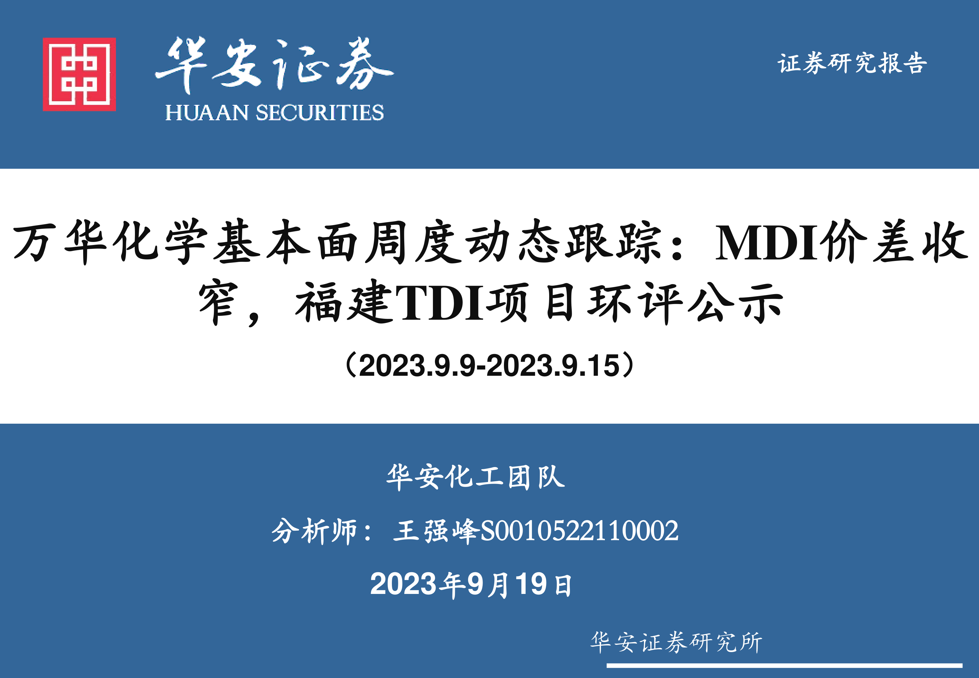 万华化学基本面周度动态跟踪:MDI价差收窄,福建TDI项目环评公示