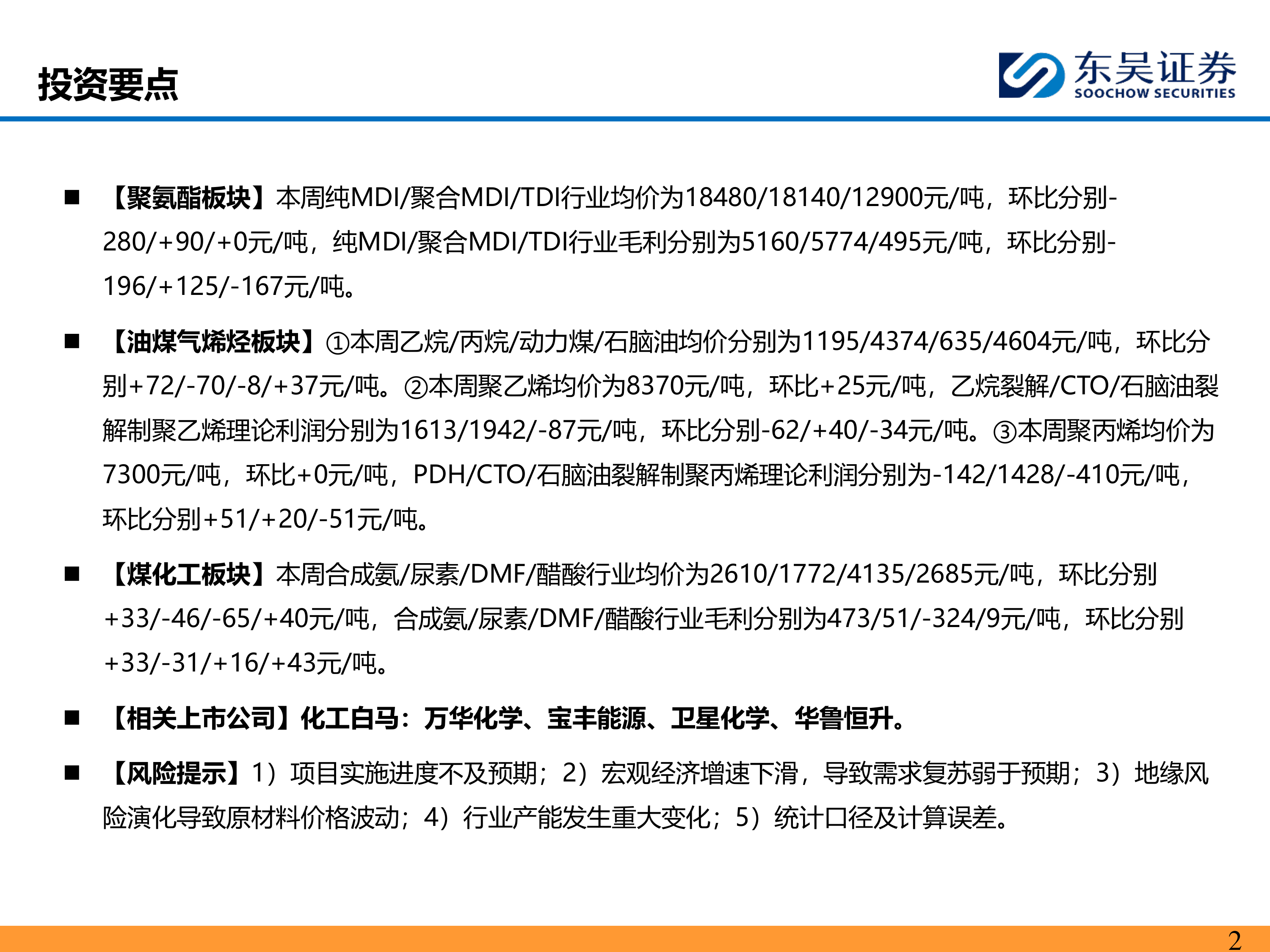整体来看,聚氨酯板块内部产品表现分化,聚合MDI相对稳健,而纯MDI和TDI的盈利能力面临挑战。