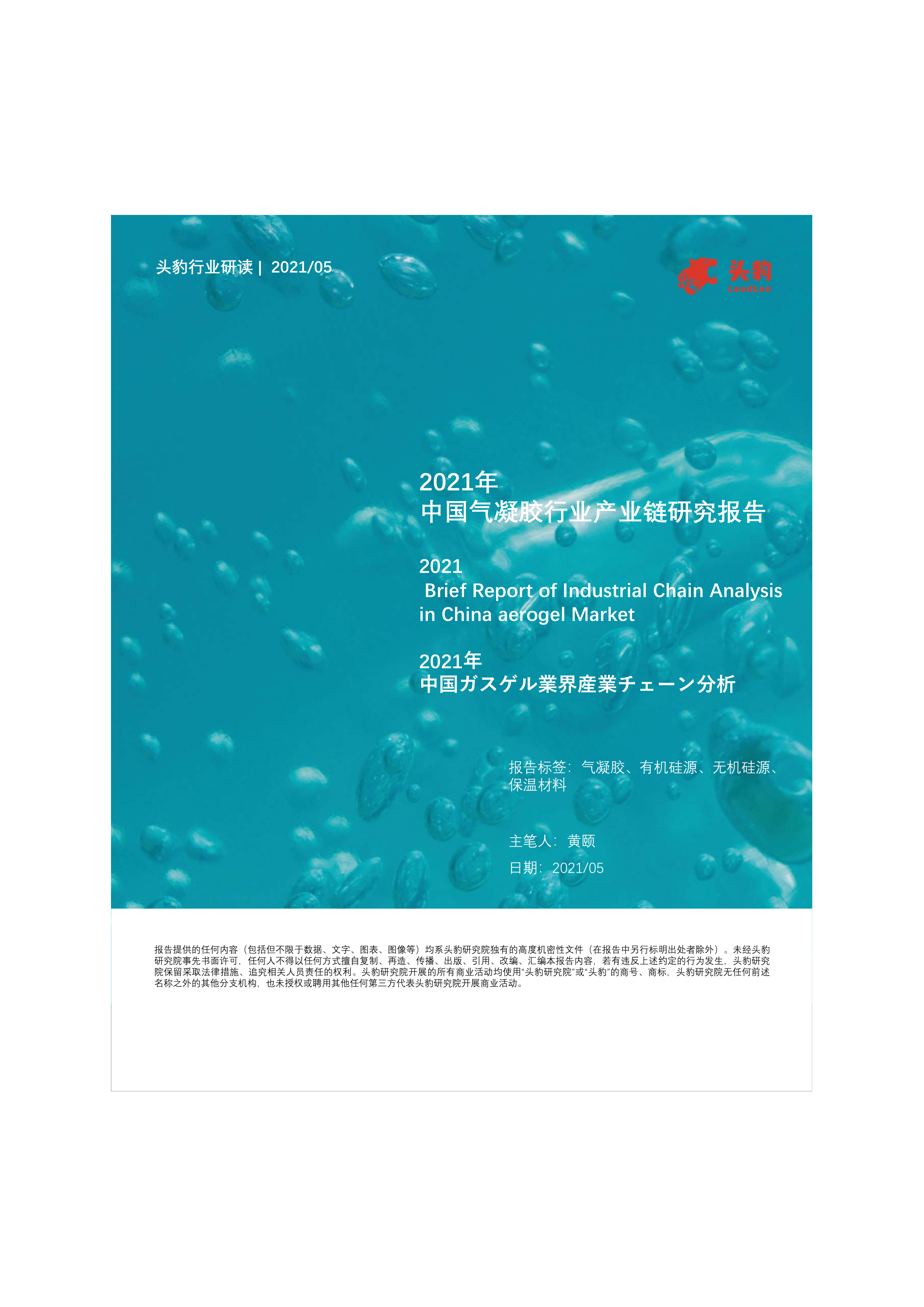 2021年中国气凝胶行业产业链研究报告