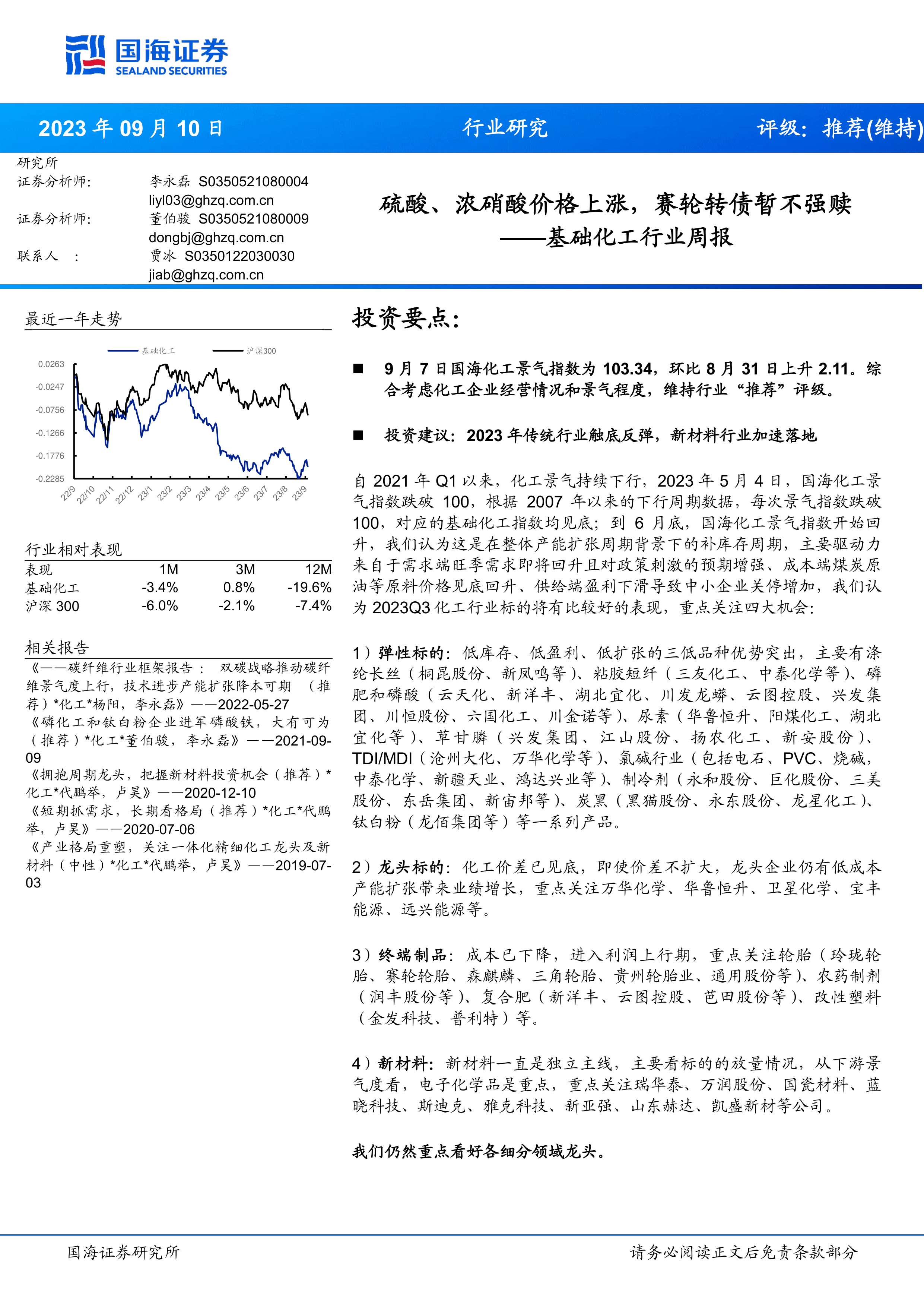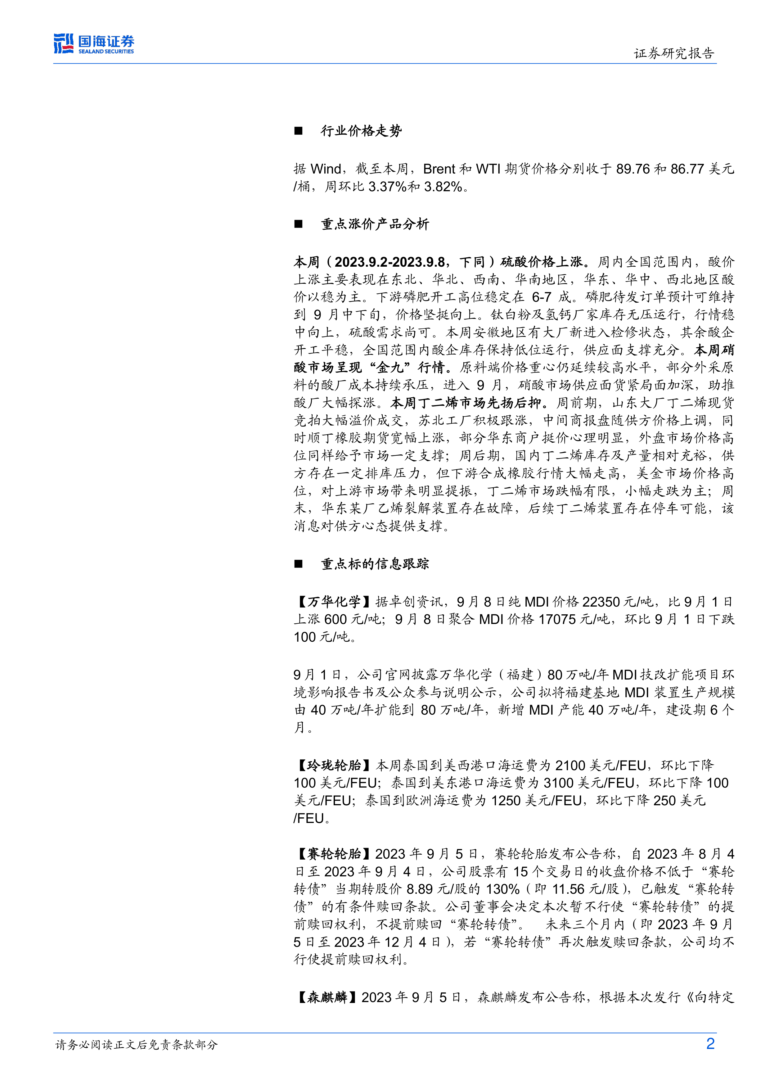 基础化工行业周报:硫酸、浓硝酸价格上涨,赛轮转债暂不强赎
