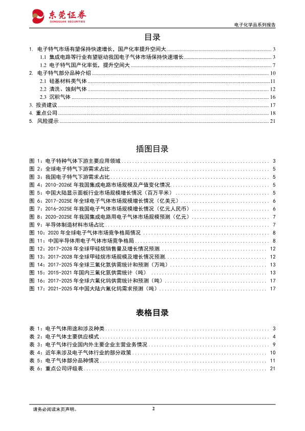 风险提示:原材料价格大幅波动导致电子气体产品盈利能力下行风险;国内经济复苏不及预期风险;半导体等行业不景气导致电子气体需求下行风险;行业供给增加,竞争加剧,供需格局恶化风险;国内技术突破、国产化率提升不及预期风险;美联储加息超预期导致经济衰退风险;贸易摩擦风险;天灾人祸等不可抗力事件的发生。