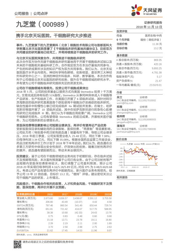 九芝堂正通过与北京天坛医院共建干细胞临床研究基地及投资美国Stemedica,积极布局干细胞前沿领域,展现出向新兴医疗业务转型的战略意图,有望为公司带来新的增长动力。尽管短期内受医保控费等政策影响,公司传统中药业务(特别是疏血通注射液)业绩承压,但其核心产品有望在再评价中重获市场认可。基于对公司现有业务的盈利预测,并综合考虑其品牌影响力、研发投入及新兴业务潜力,报告维持对九芝堂的“增持”评级,并建议投资者密切关注其干细胞业务的研发进展及市场化前景。