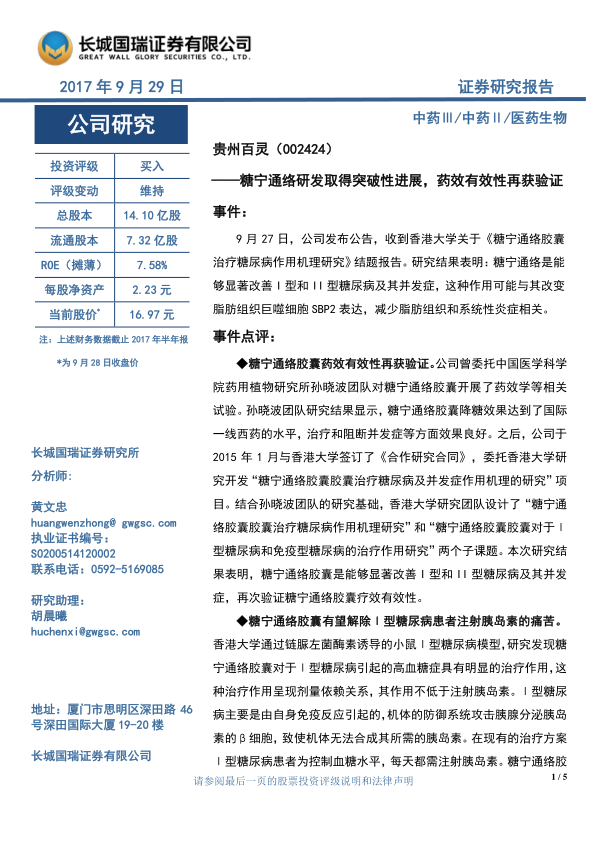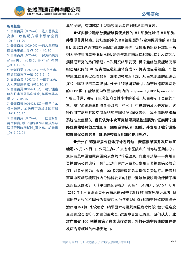 本报告分析了贵州百灵糖宁通络胶囊在治疗糖尿病方面的最新研究进展,香港大学的研究证实了该药物的有效性,并揭示了其作用机制,为糖尿病治疗提供了新的方向。同时,公司启动的糖尿病公益诊疗计划也有助于扩大糖宁通络胶囊的市场。维持对贵州百灵的“买入”评级,但同时也提示了相关风险。