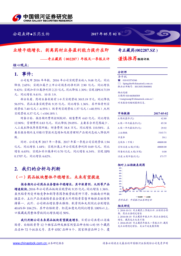 年报及一季报点评:业绩平稳增长,剥离药材业务盈利能力提升在即