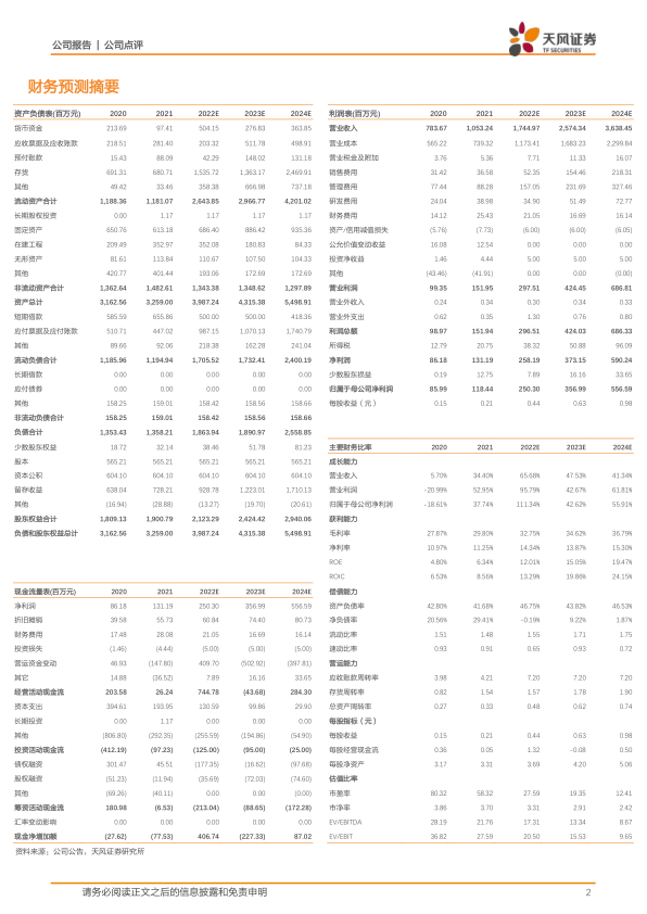 分析认为,公司受益于全球“减糖”大趋势,天然甜味剂业务进入高速增长期;同时,美国工业大麻相关政策持续向好,CBD提取物需求有望加速释放。预计公司2022-2024年营收分别为17.45亿元、25.74亿元和36.38亿元,同比增长65.68%、47.53%和41.34%。由于公司规模效应显现带动盈利能力快速提升,上调净利润预测至2.50亿元、3.57亿元和5.57亿元(原预测为2.10亿元、3.54亿元和5.50亿元),同比增长111.34%、42.62%和55.91%。基于此,维持“买入”评级。
