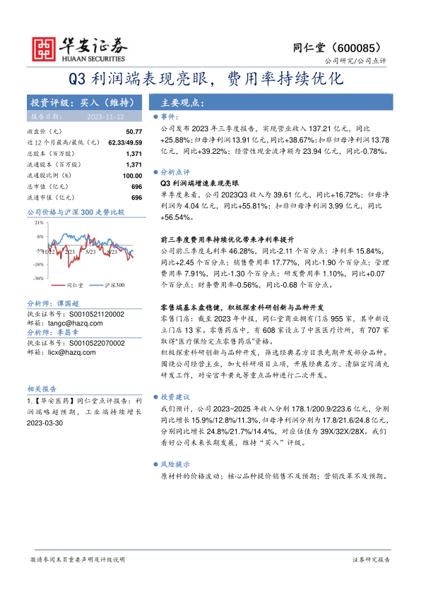 考虑到公司稳健的零售基本盘,以及在科研创新和品种开发方面的积极探索,华安证券维持对同仁堂“买入”评级,并看好其长期发展。