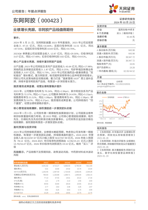 本报告对东阿阿胶(000423)2023年年度报告进行了解读,核心观点如下: