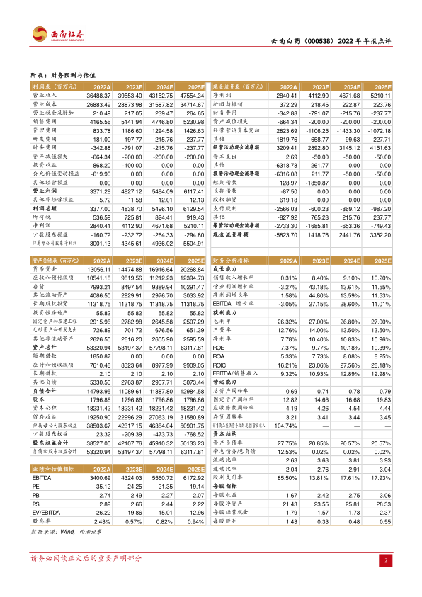 本报告对云南白药(000538)2022年年报进行了深度分析,核心观点如下: