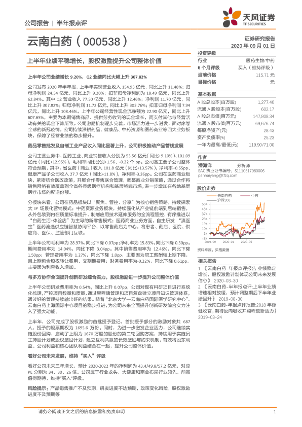 上半年业绩平稳增长,股权激励提升公司整体价值