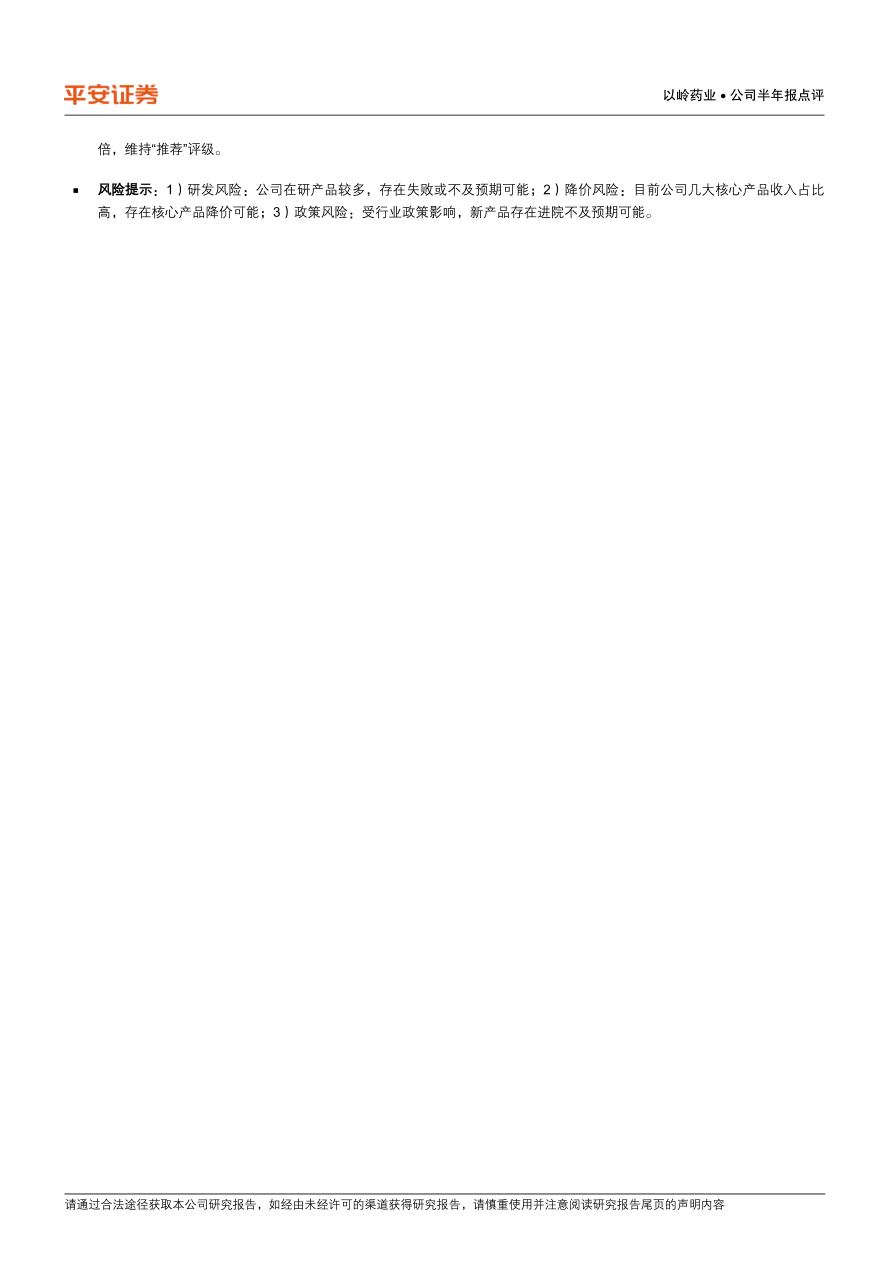风险提示:1)研发风险:公司在研产品较多,存在失败或不及预期可能;2)降价风险:目前公司几大核心产品收入占比高,存在核心产品降价可能;3)政策风险:受行业政策影响,新产品存在进院不及预期可能。