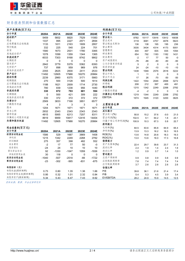 报告预测公司2022年至2024年每股收益分别为1.35/1.36/1.66元,对应PE分别为22/21/17倍,首次覆盖,给予“买入”评级。同时,报告也提示了产品研发进度、产品销售以及新冠疫情扰动等风险。