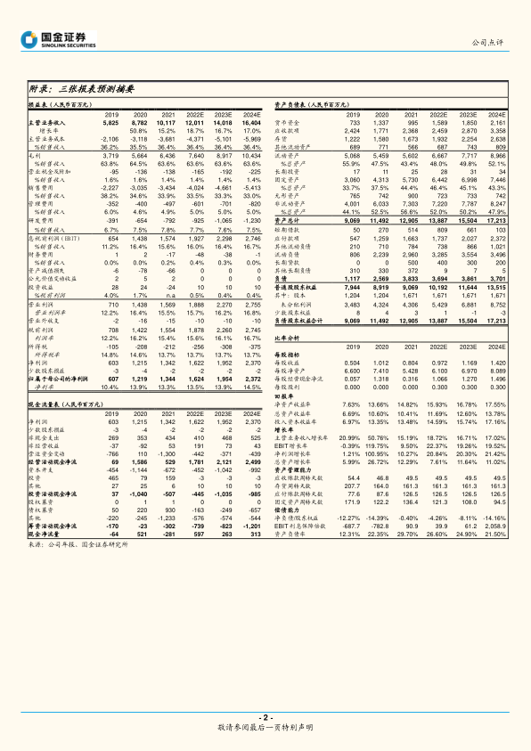 我们预计公司 2022- 2024 年营收分别为 120.1/ 140.2/164.0 亿元,归母净利润分别为 16.2/19.5/23.7 亿元。维持“买入”评级。