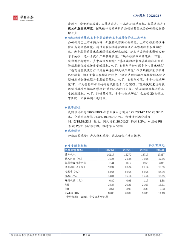 综合来看,以岭药业具备较强的研发实力和市场竞争力,未来发展潜力巨大,维持“买入”评级,建议关注其长期投资价值。