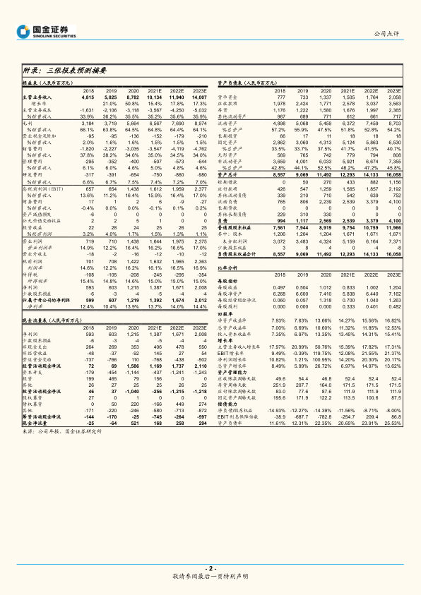 我们维持 公司的 盈利预 测, 预 计公司 2021- 2023 年营收分 别为101.3/119.4/140.0 亿元,归母净利润分别为 13.9/16.7/20.1 亿元。当前股价对应 2021 年至 2023 年 PE 为 47/39/32 倍,维持“买入”评级。