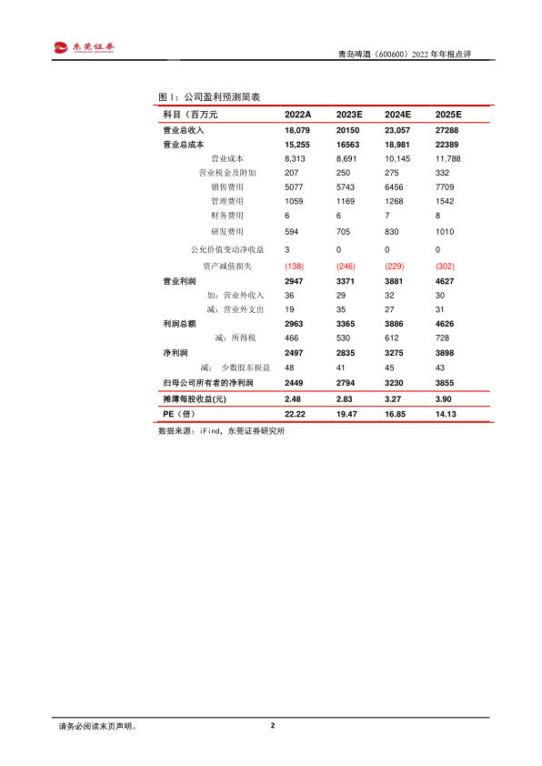 事件:公司发布2022年年度报告。2022年,公司实现营业收入180.79亿元,同比增长16.31%;实现归属于上市公司股东的净利润24.49亿元,同比增长19.16%;实现扣非归母净利润22.19亿元,同比增长19.75%。