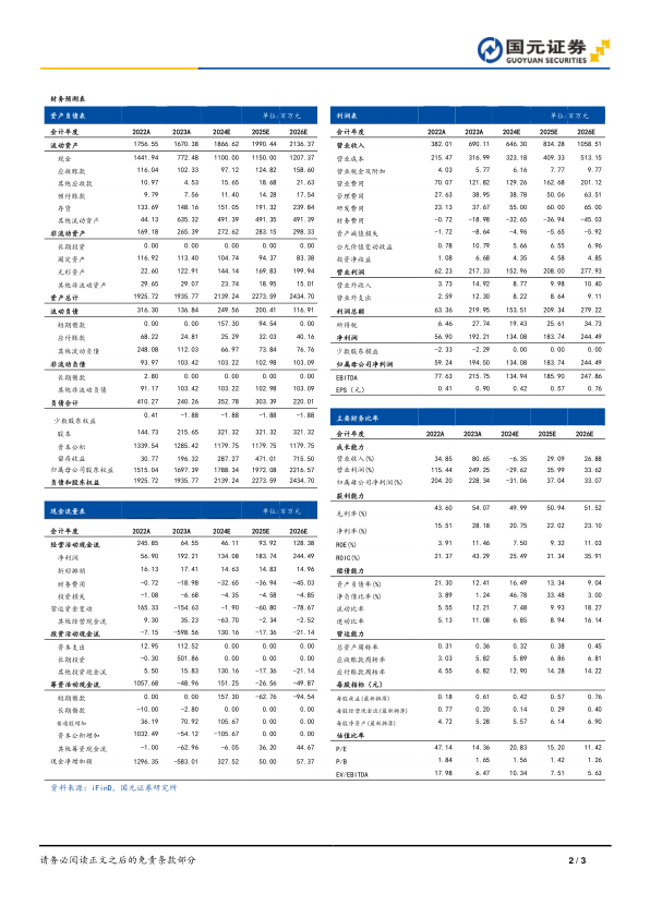 报告维持对山外山公司的“买入”评级,看好其作为我国血液透析行业龙头之一的长期发展潜力,尤其是在血透设备持续快速增长和血透耗材通过集采放量的背景下。预计公司2024-2026年营业收入分别为6.46亿元、8.34亿元和10.59亿元,归母净利润分别为1.34亿元、1.84亿元和2.44亿元,对应EPS分别为0.42元/股、0.57元/股和0.76元/股。