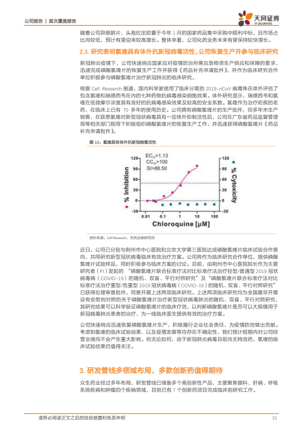 本报告的核心观点是:众生药业作为一家传统中成药企业,近年来积极发展化学药业务,并前瞻性地布局创新药领域,有望成功转型。公司在呼吸系统、非酒精性脂肪肝炎(NASH)、眼科、肿瘤等多个领域均有创新布局,其中流感新药和NASH新药已进入二期临床阶段,未来随着新药数据的发布和获批预期的增强,有望成为股价的重要催化剂。