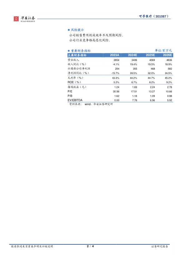我们预计2024-2026年公司收入分别为34.06亿元、40.69亿元和48.36亿元,收入增速分别为19.4%、19.5%和18.9%,2024-2026年归母净利润分别实现3.55亿元、4.68亿元和5.82亿元,增速分别为39.5%、32.0%和24.5%,2024-2026年EPS预计分别为1.69元、2.24元和2.78元,对应2024-2026年的PE分别为18x、13x和11x,维持“买入”评级。