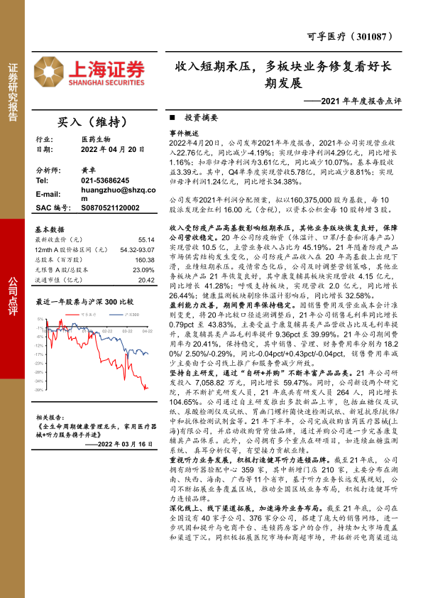 2021年年度报告点评:收入短期承压,多板块业务修复看好长期发展