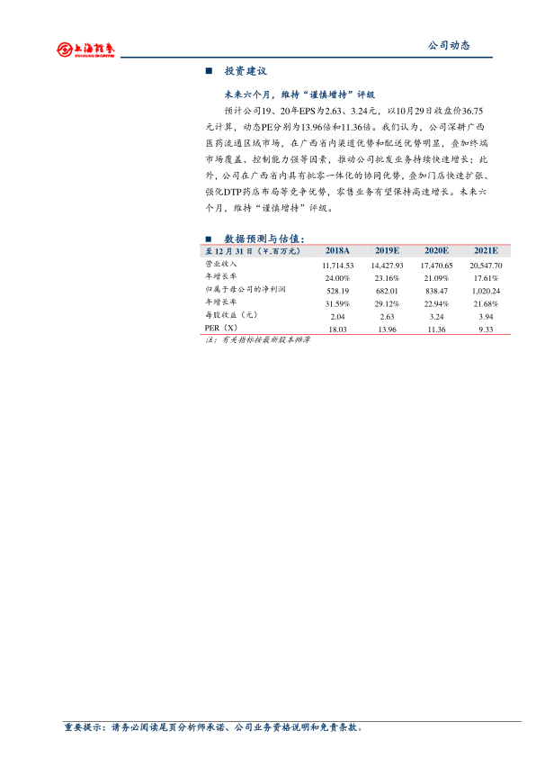 本报告分析了柳药股份2019年第三季度的业绩表现,指出公司营收和利润均实现显著增长,盈利能力提升主要得益于高毛利业态的快速增长和收入结构的优化。虽然期间费用率有所上升,但经营性现金流预计将有所改善。基于公司在广西医药流通市场的优势和未来业绩增长的预期,维持对柳药股份“谨慎增持”的评级。