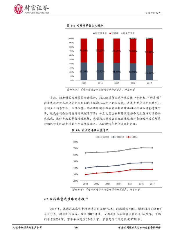 - 2.2 医药零售连锁率逐年提升