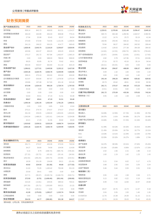 上调公司2024-2025年营业收入和归母净利润预测,并维持“买入”评级。预计2024-2026年营业收入分别为23.11亿元、30.36亿元和38.49亿元,归母净利润分别为4.33亿元、5.70亿元和7.43亿元。
