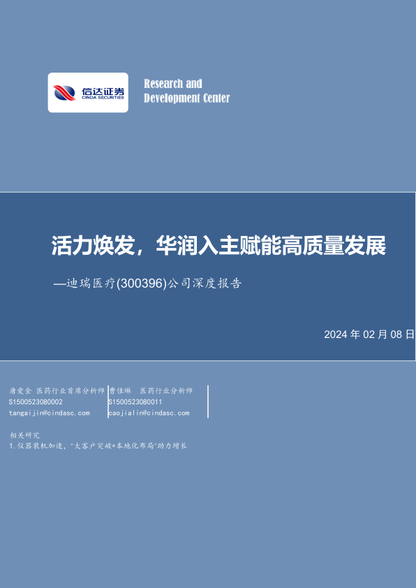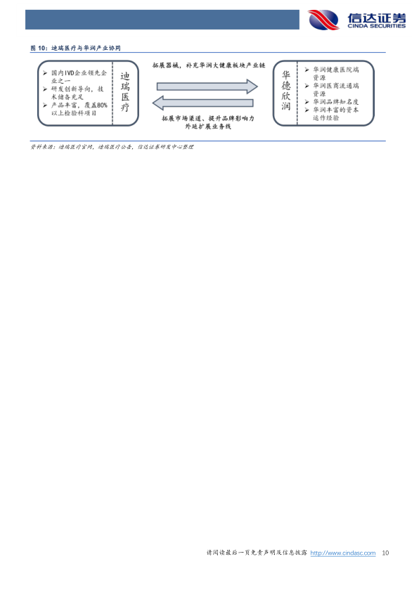 2020年华润入主,通过股权转让成为迪瑞医疗的实际控制人,公司股权结构转变为国资、民营相结合。截至2023年第三季度,华德欣润(华润旗下)持有公司28.12%的股权。华润集团作为大健康板块的唯一器械产业型企业,从业务、品牌、经营和资本等多方面为迪瑞医疗的发展赋能: